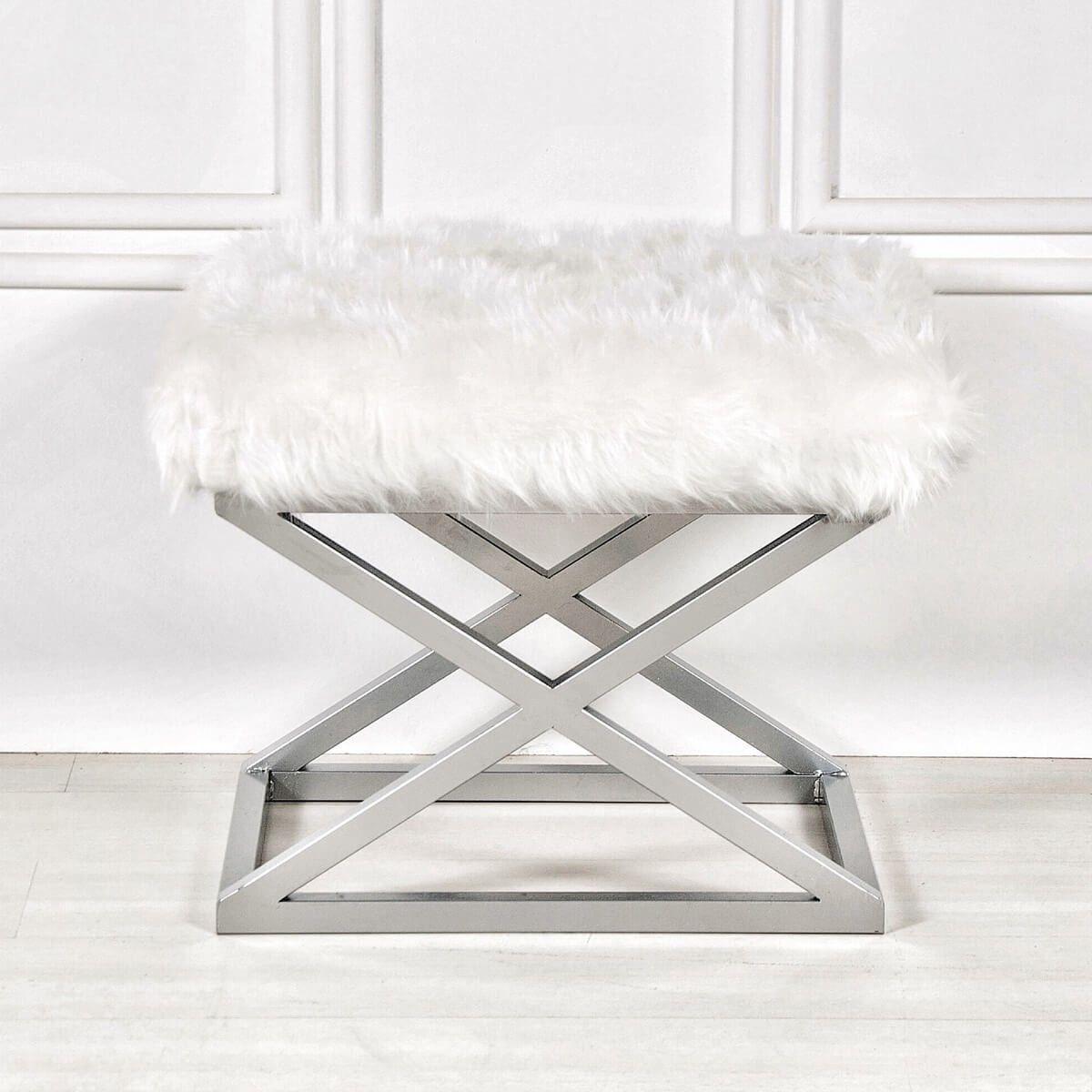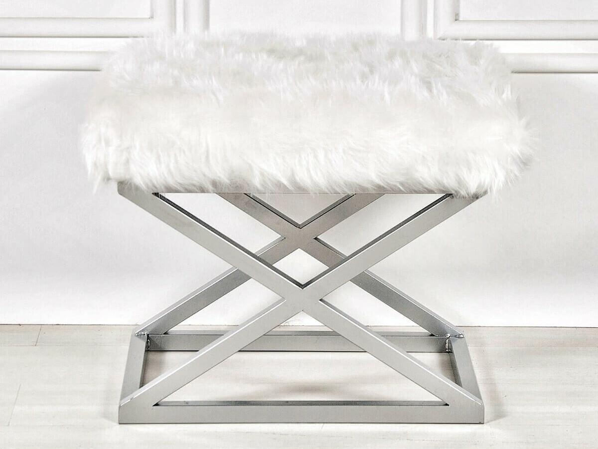 Tabouret style industriel Lemed Métal Argent et Tissu peluche Blanc