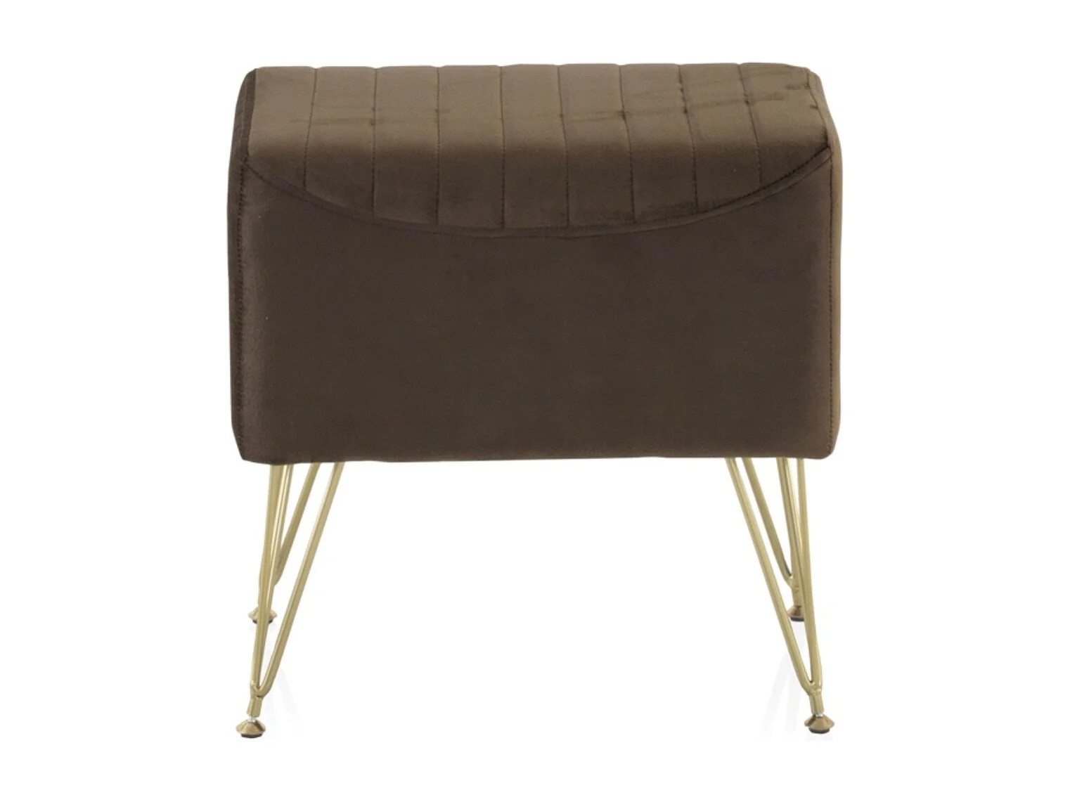 Pouf design velours avec pieds en acier chromé LOZA-Marron foncé