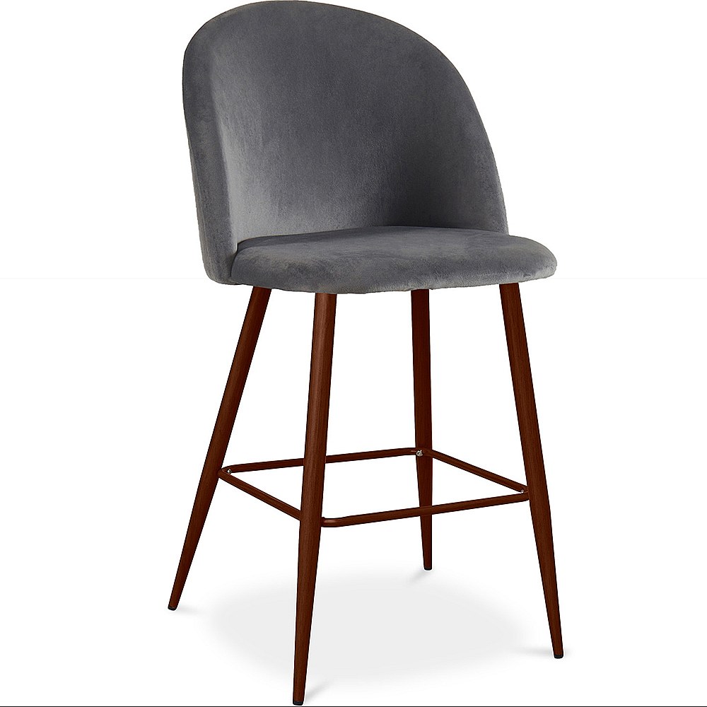 Tabouret tapissé en velours - Design scandinave - 66cm - Evelyne Gris foncé