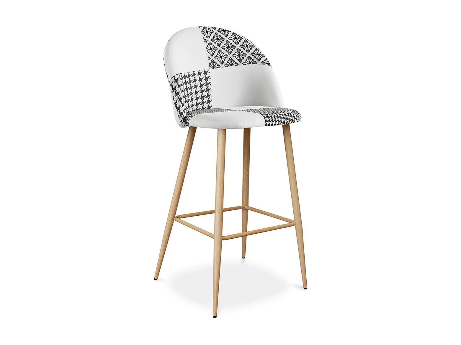Tabouret Tapissé Patchwork - Style Scandinave - Noir et Blanc - Evelyne Blanc / Noir