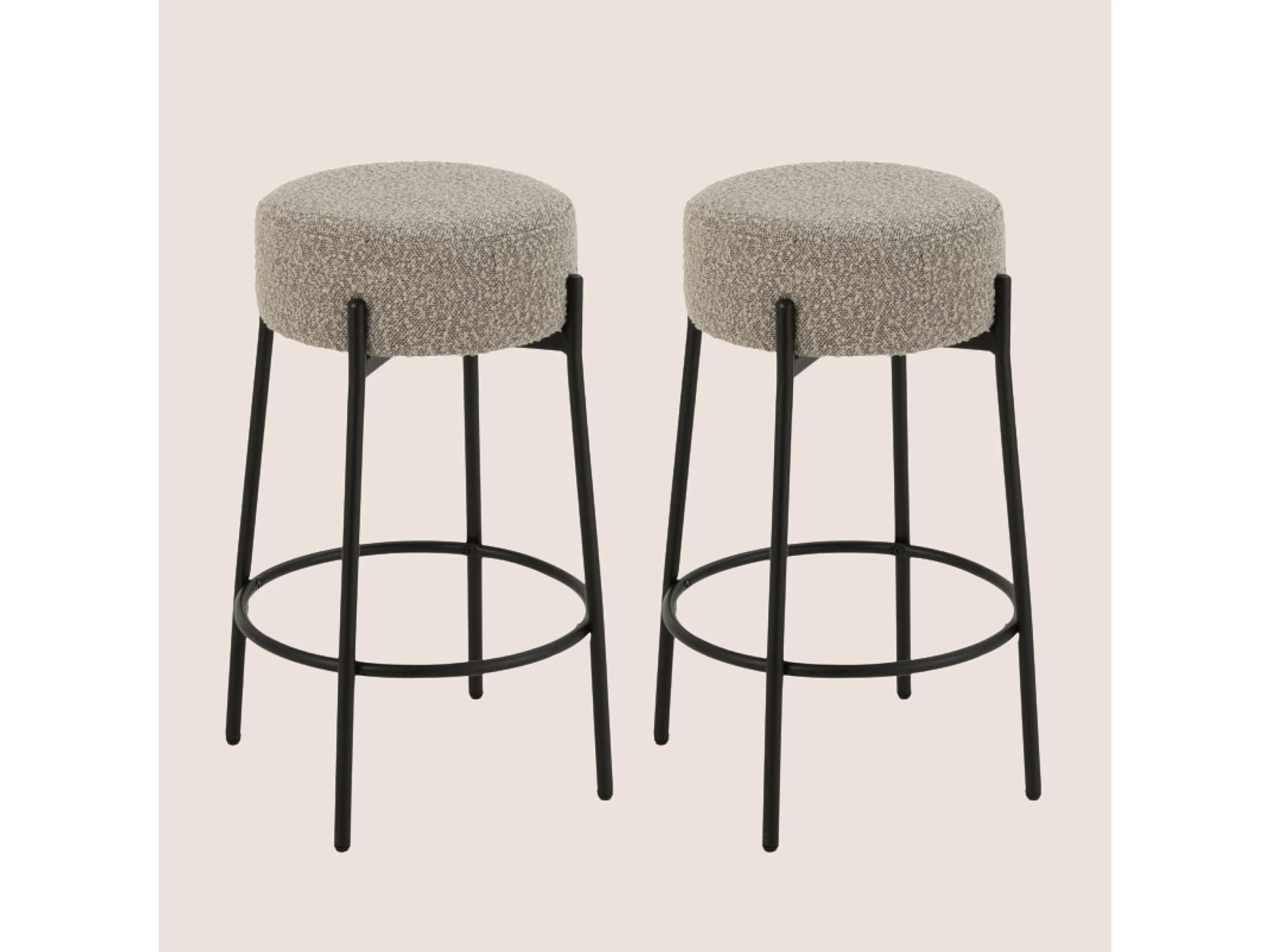Tabourets de bar en métal noir et bouclette (lot de 2) - GERDA