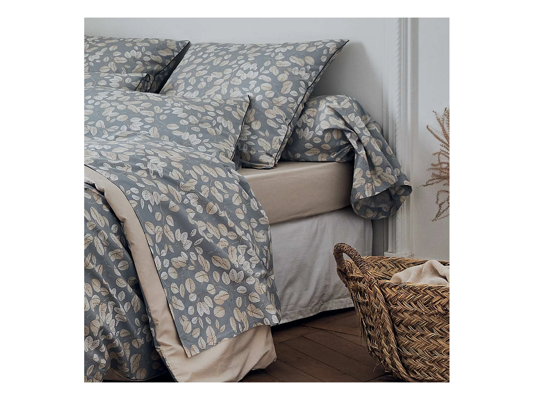 Linge de lit gris
