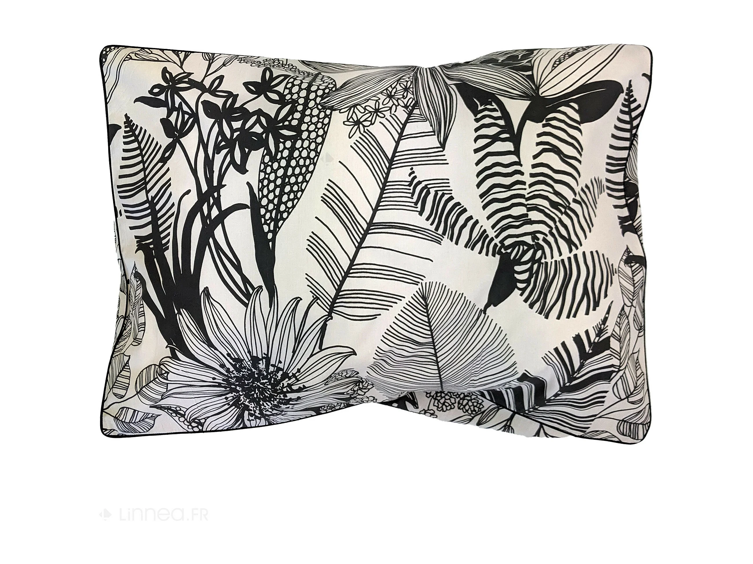 Taie d'oreiller 50x70 cm percale de coton ALBA beige/noir