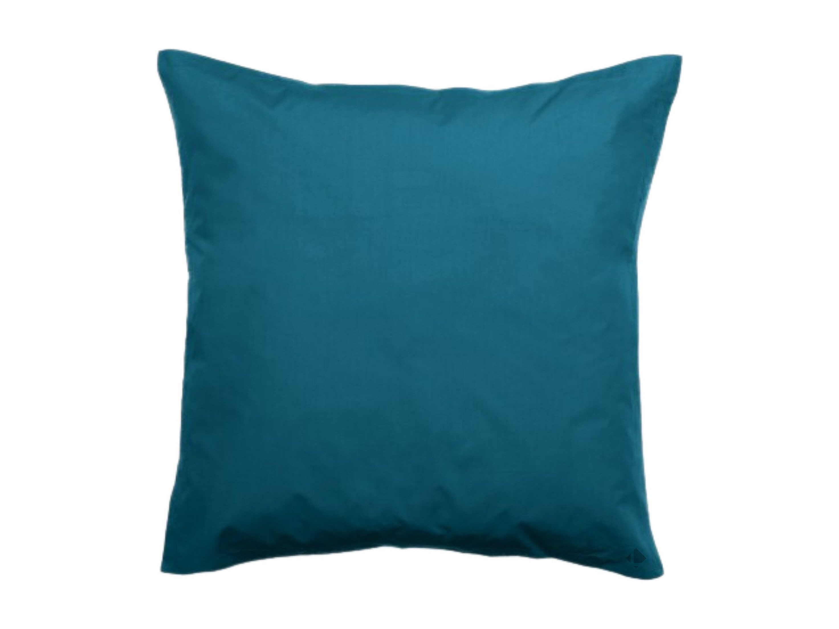 Taie d'oreiller volants plats 65x65 cm percale MANOIR bleu lagon