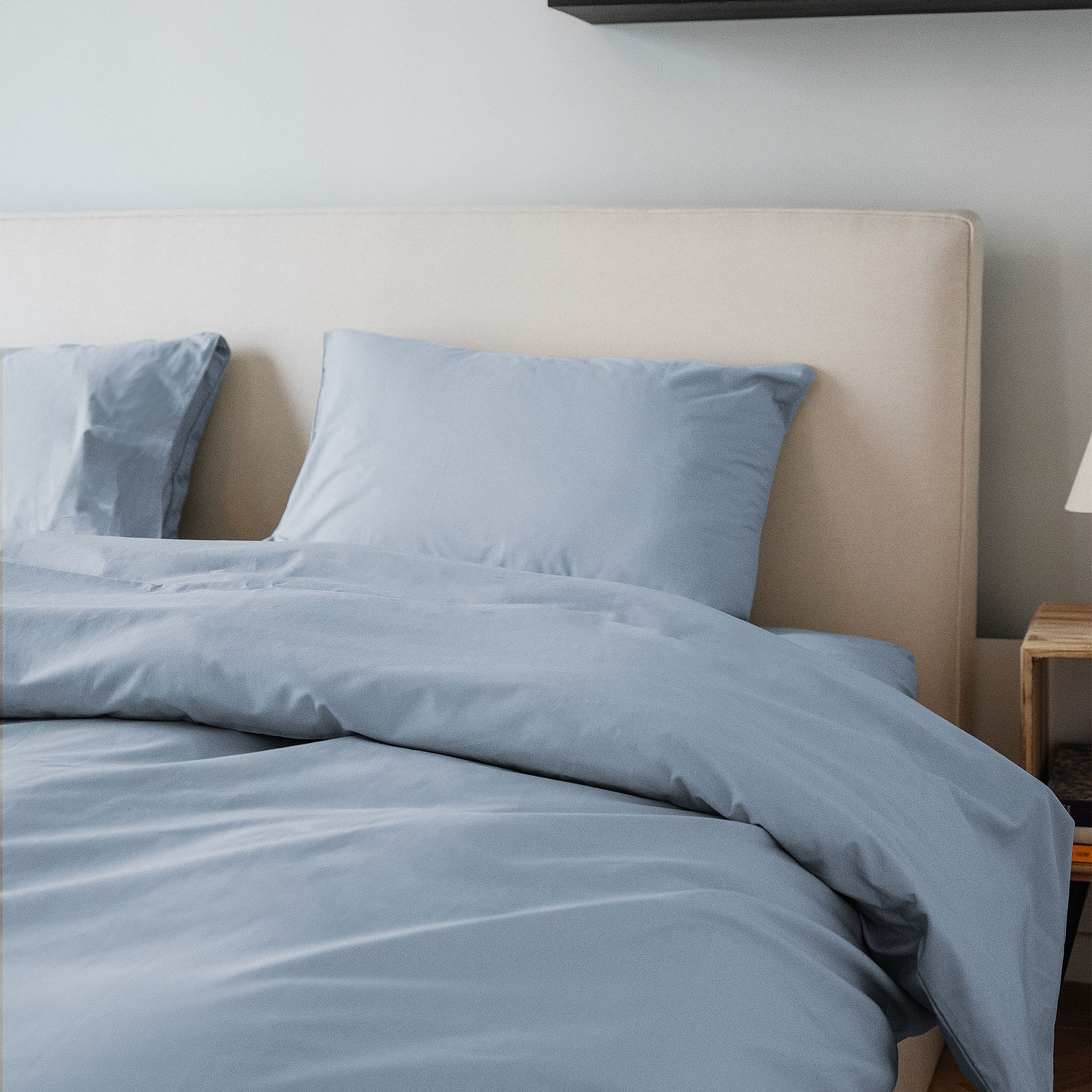 Set de 2 taies d'oreillers coton bleu gris 50x70 cm