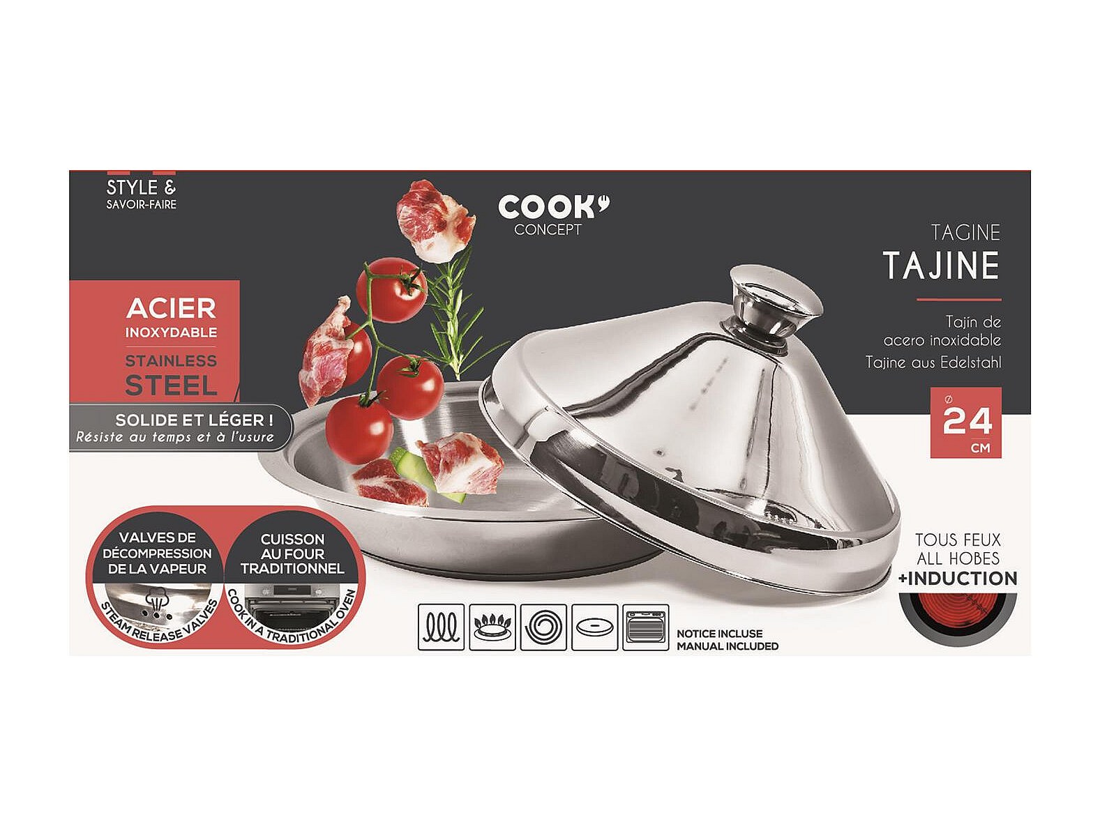 Tajine en acier inoxydable 24cm Compatible Tous Feux (Induction) et four