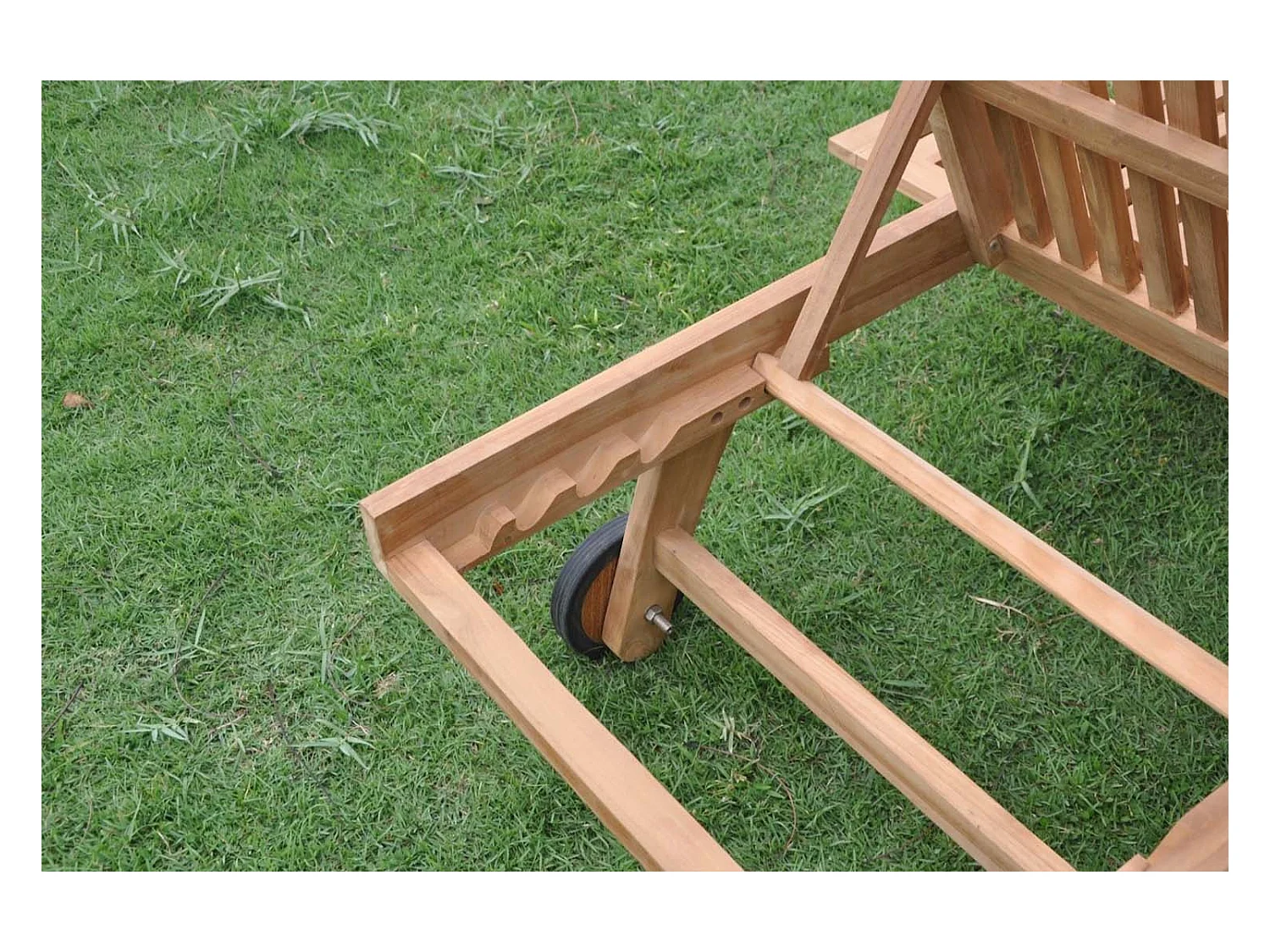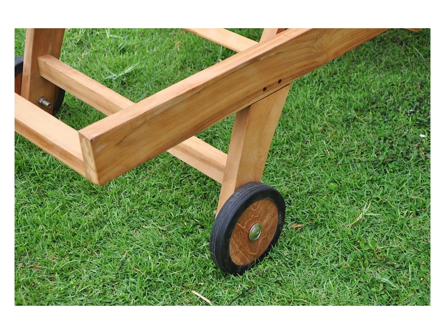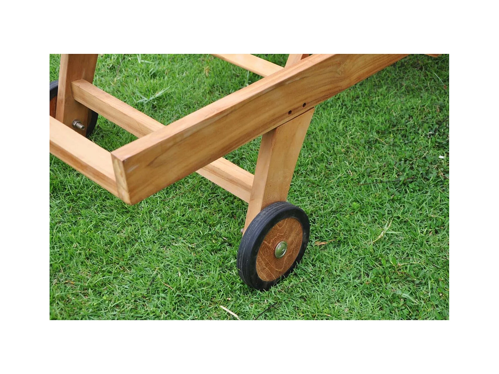 Transat en Teck avec Roues et Plateau TAMANA - Bain de Soleil Réglable pour Extérieur