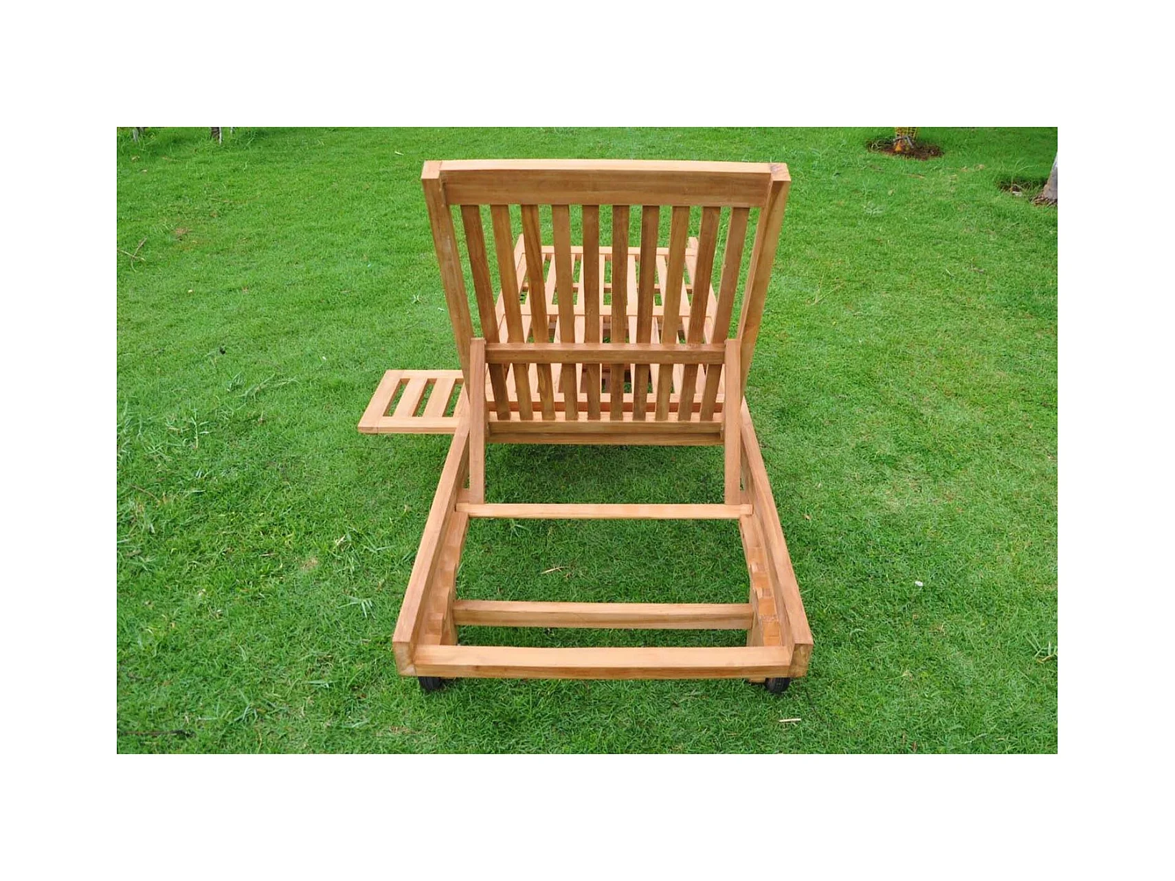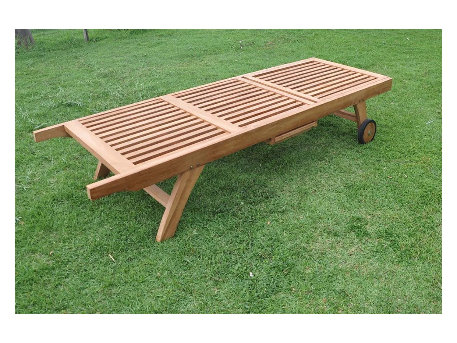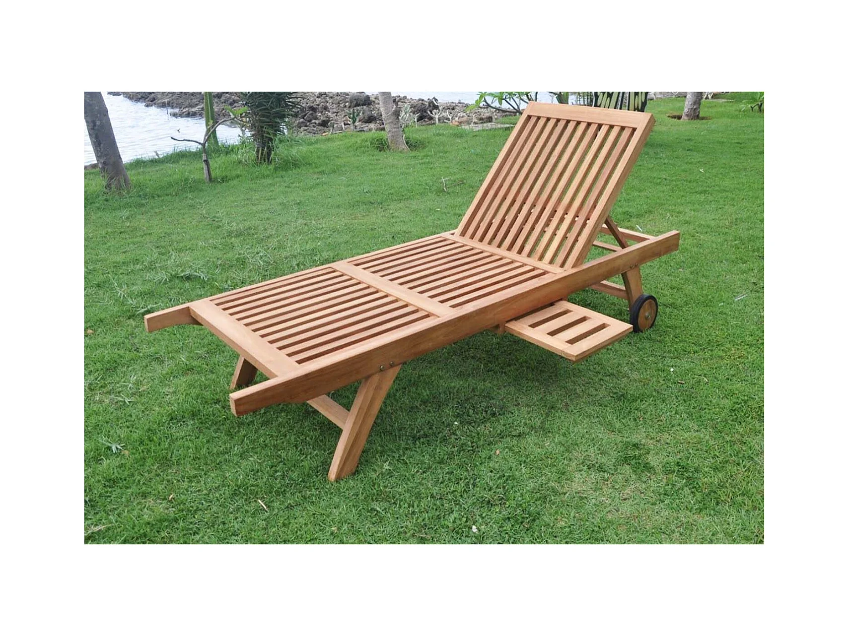 Transat en Teck avec Roues et Plateau TAMANA - Bain de Soleil Réglable pour Extérieur