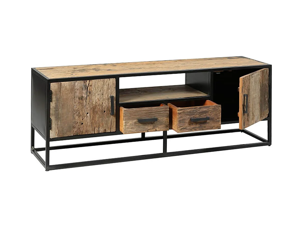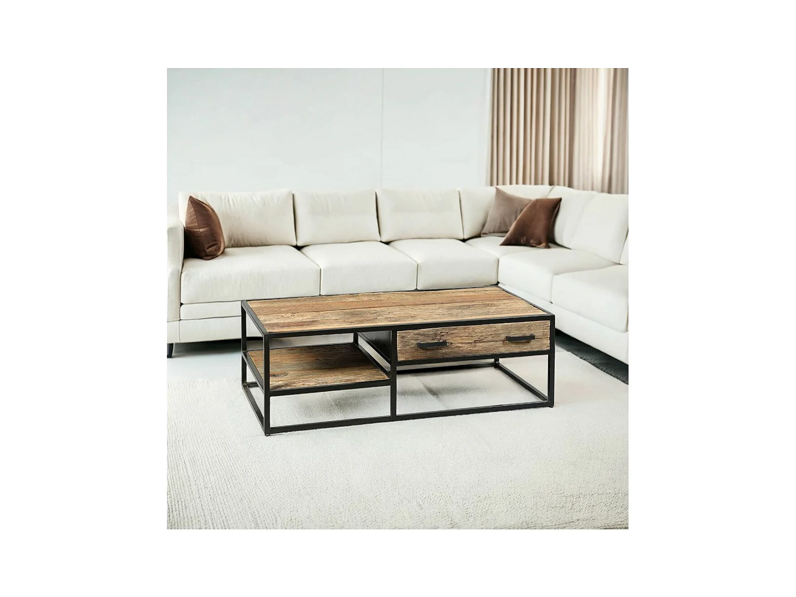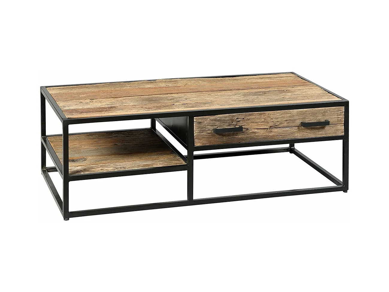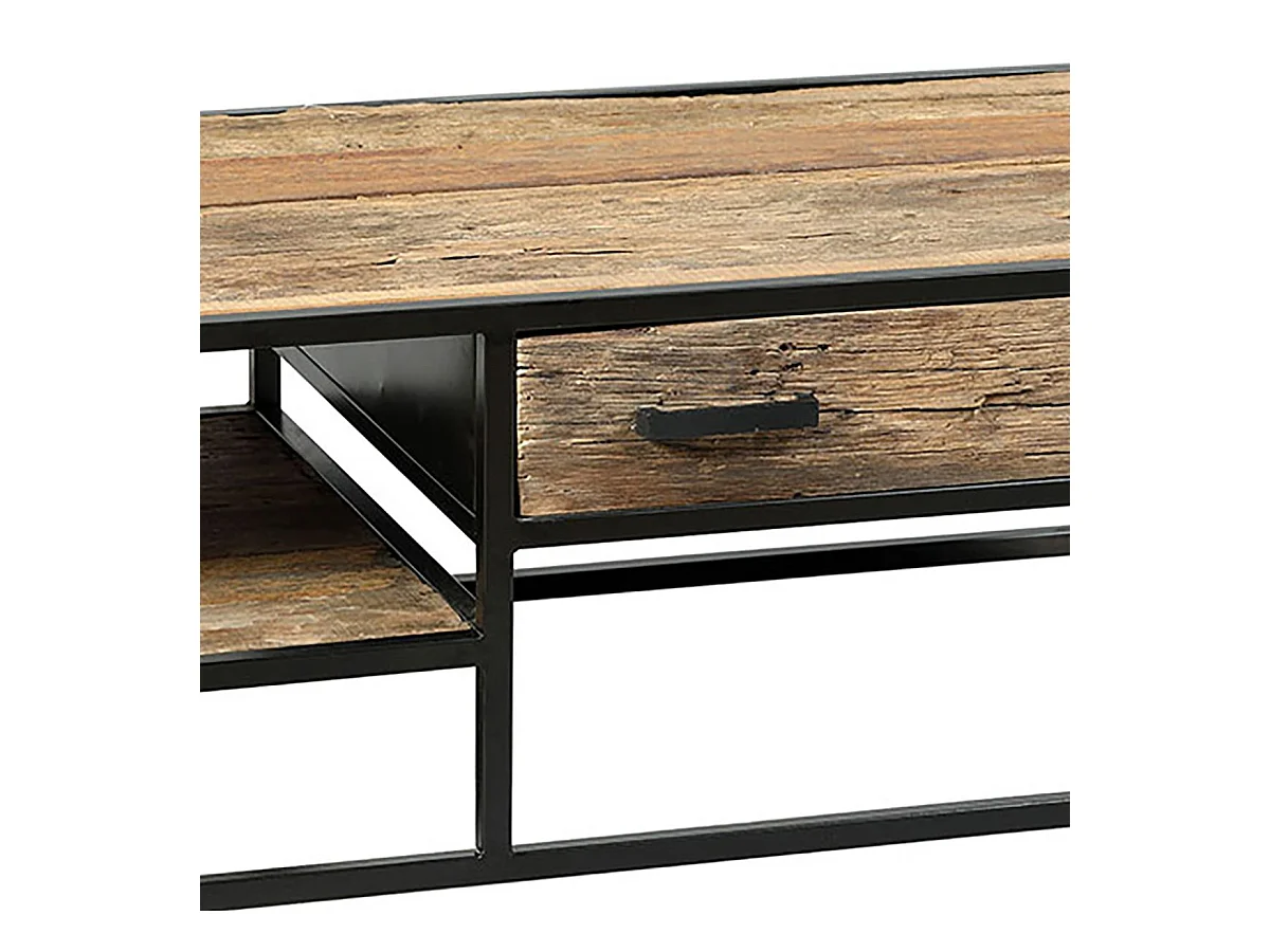 TANETOA - Table Basse 1 Tiroir en Teck Recyclé et Métal