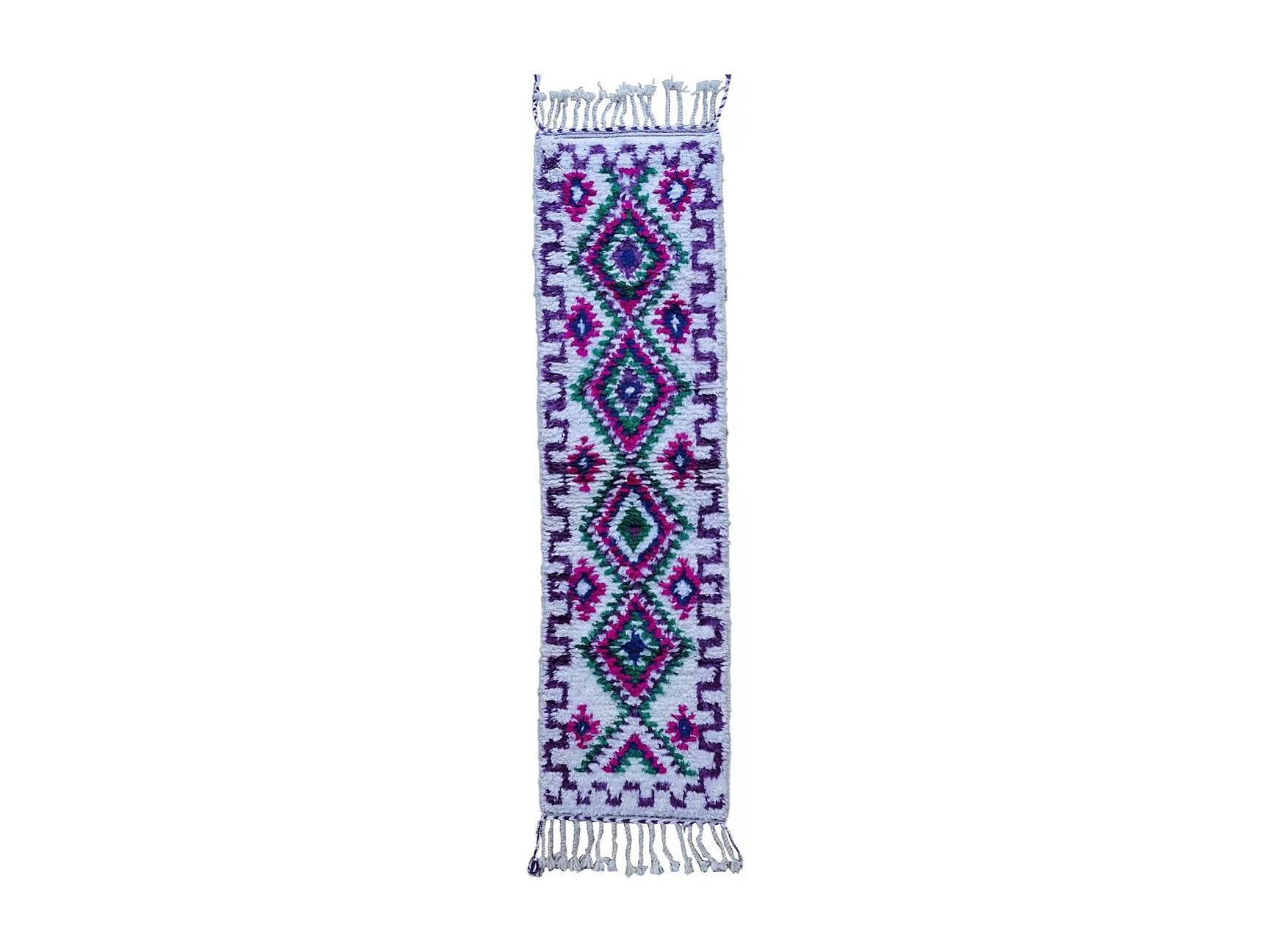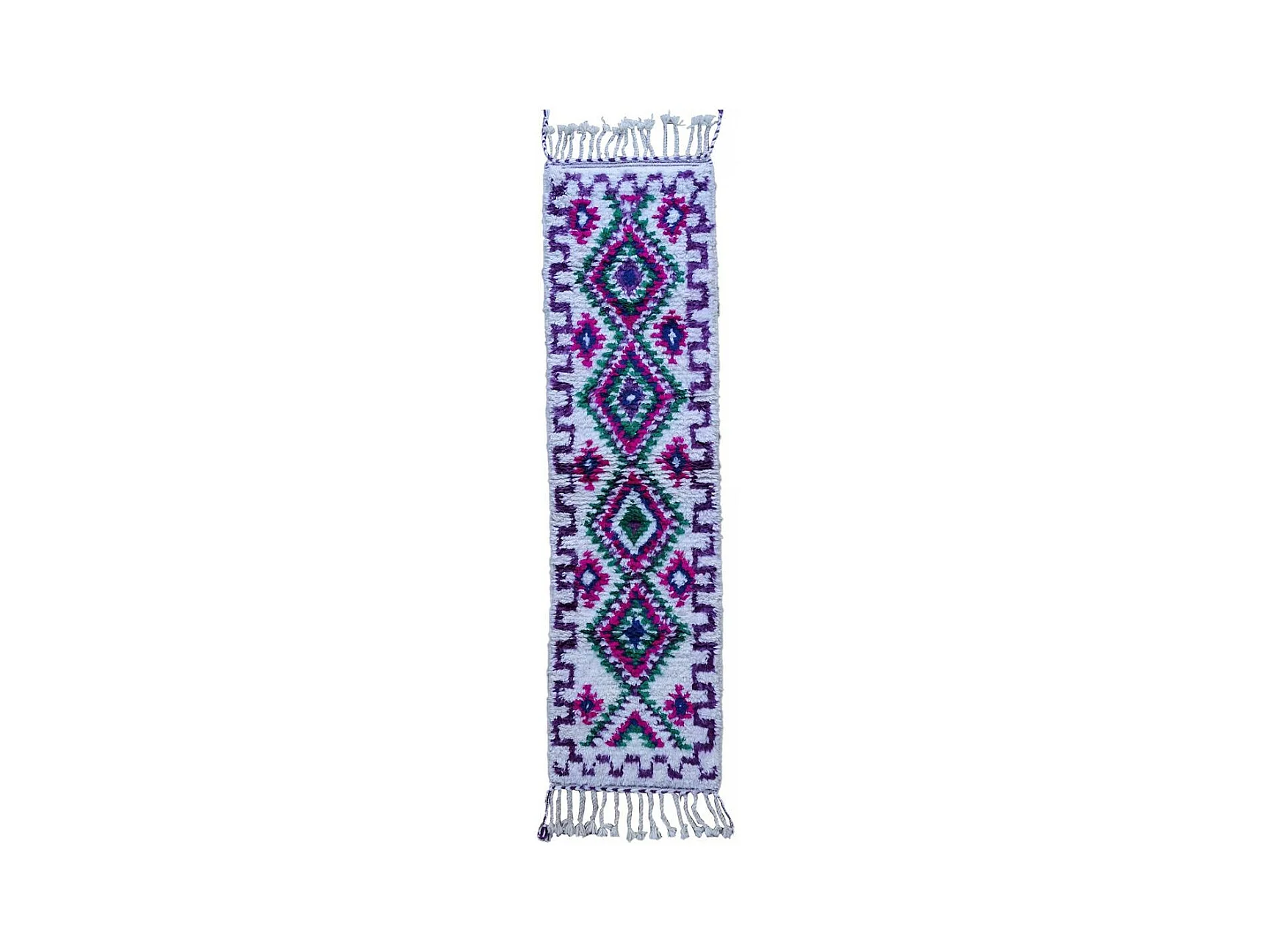 Authentique tapis berbère 65x240 fait à la main en laine crème et rose BENI OUARAIN DI