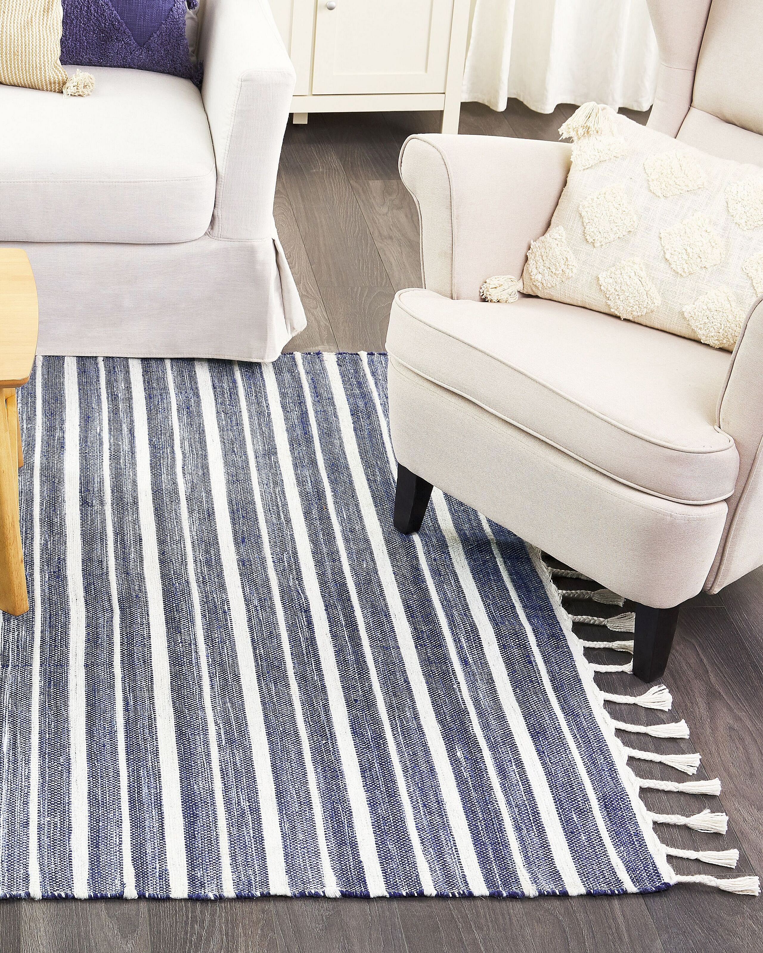 Tapis en coton recyclé et laine ivoire et bleu Sarah 230 x 160 cm