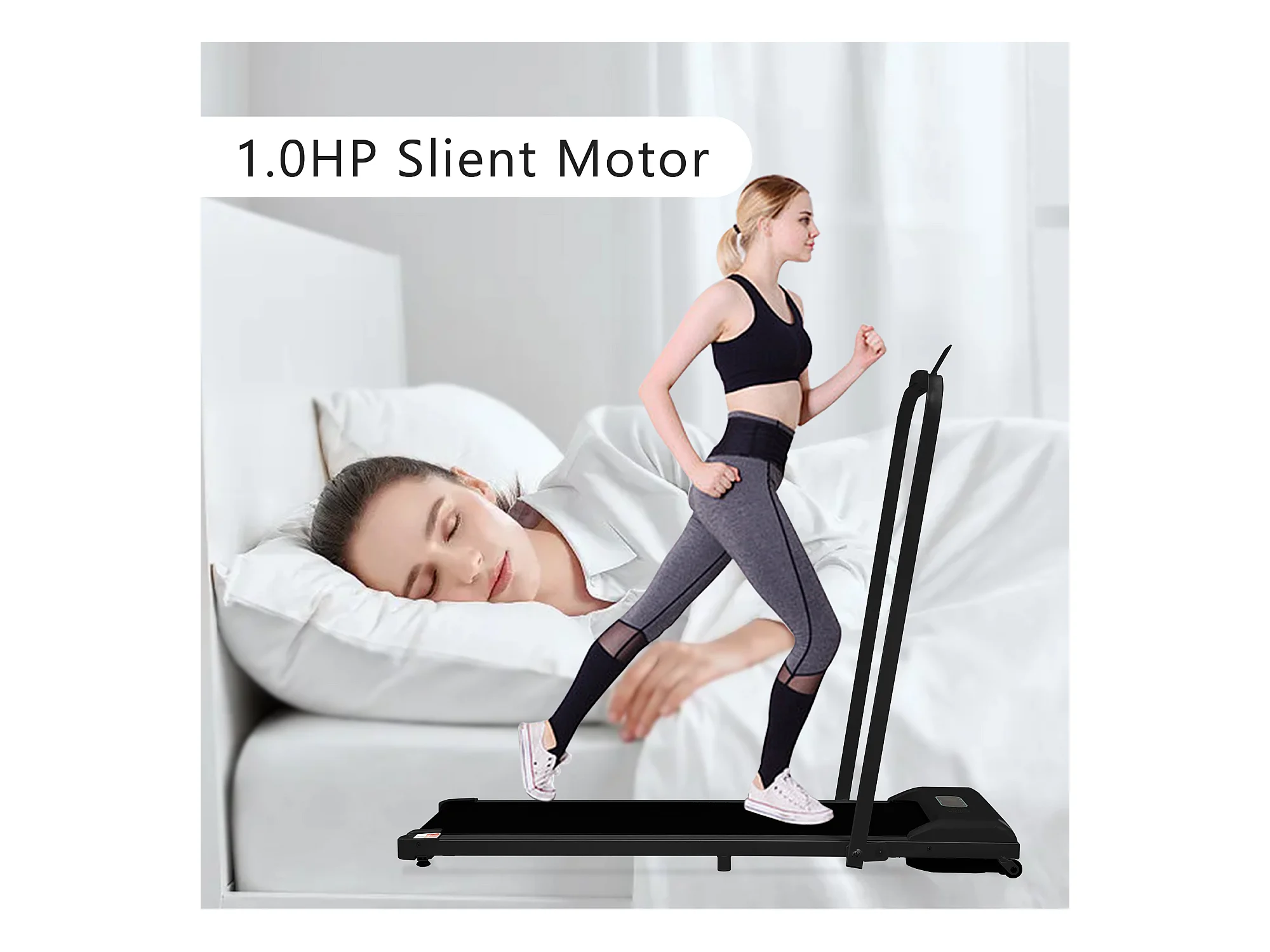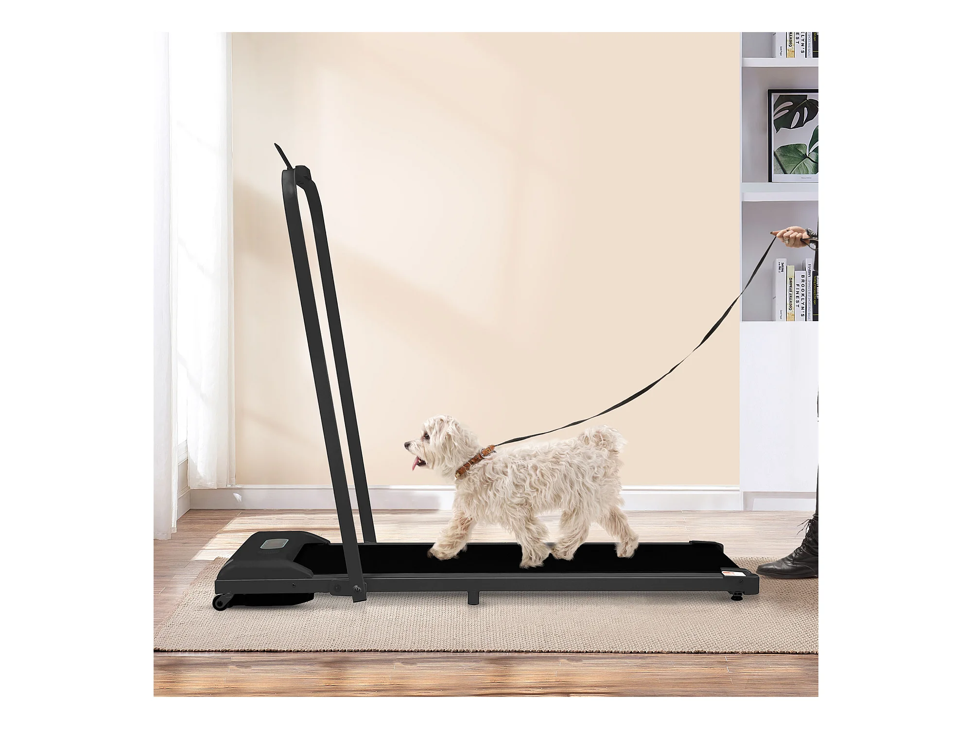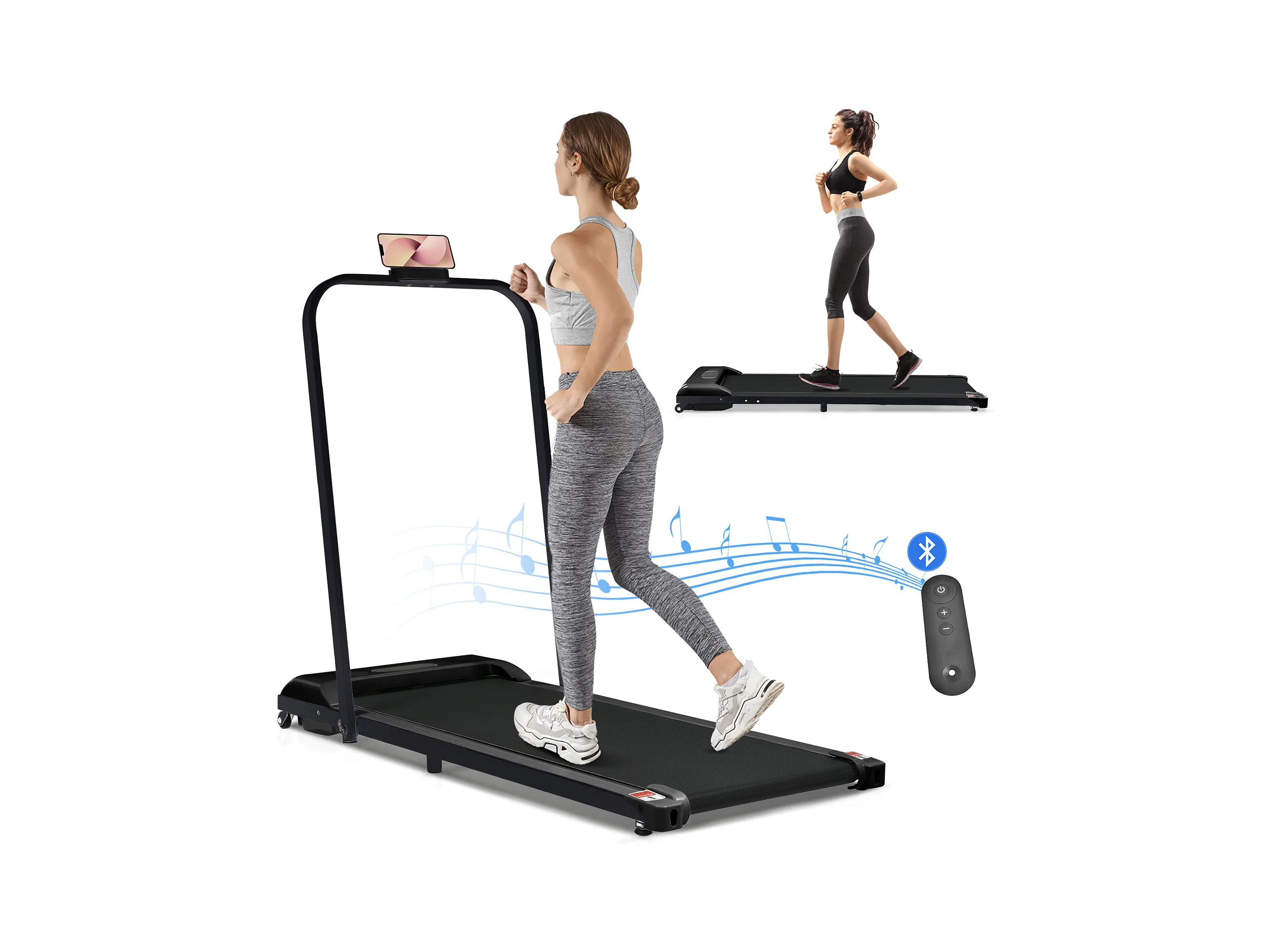 Tapis course pliable 2-en-1 maison/bureau, 1-6 km/h, LED, Bluetooth, support téléphone, métal noir (130x58x13cm)