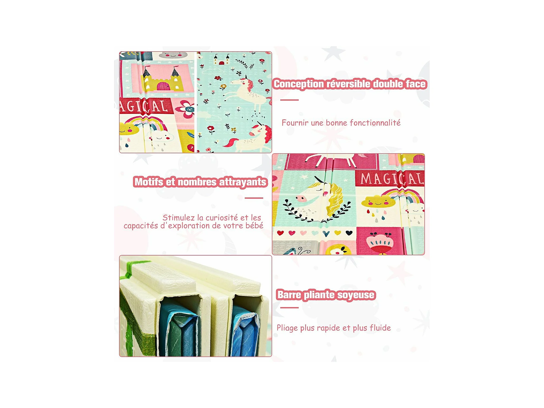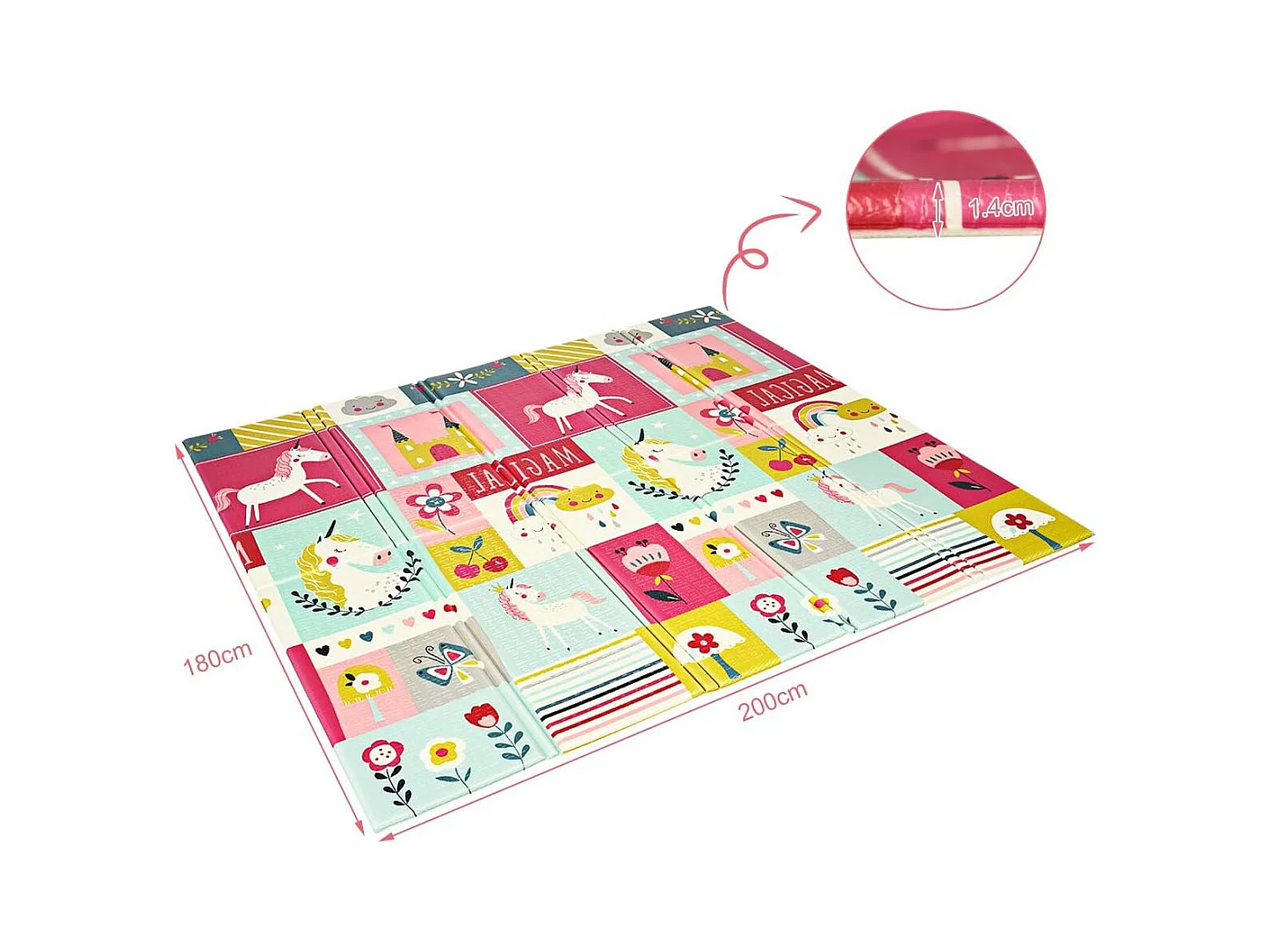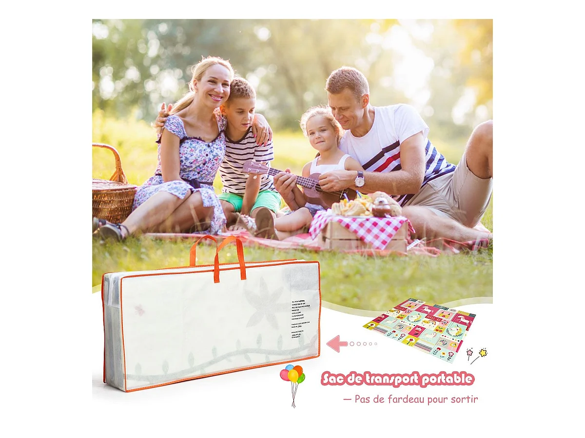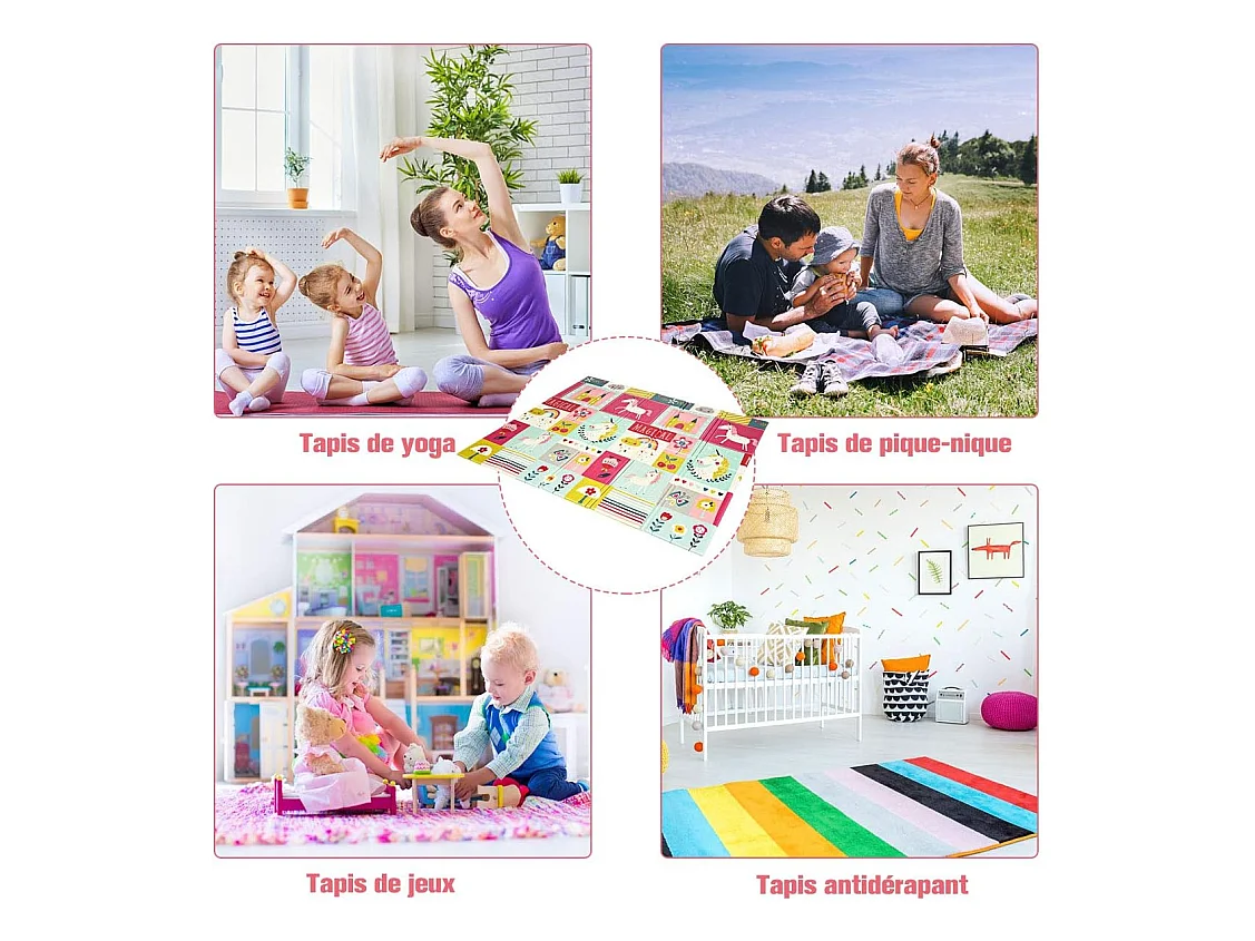 Tapis de Jeu pour Bébé Pliable 200x180x1,4CM avec l'Image Licorne/Lion en Mousse XPE Non Toxique Antidérapant Double Face avec Sac de Transport