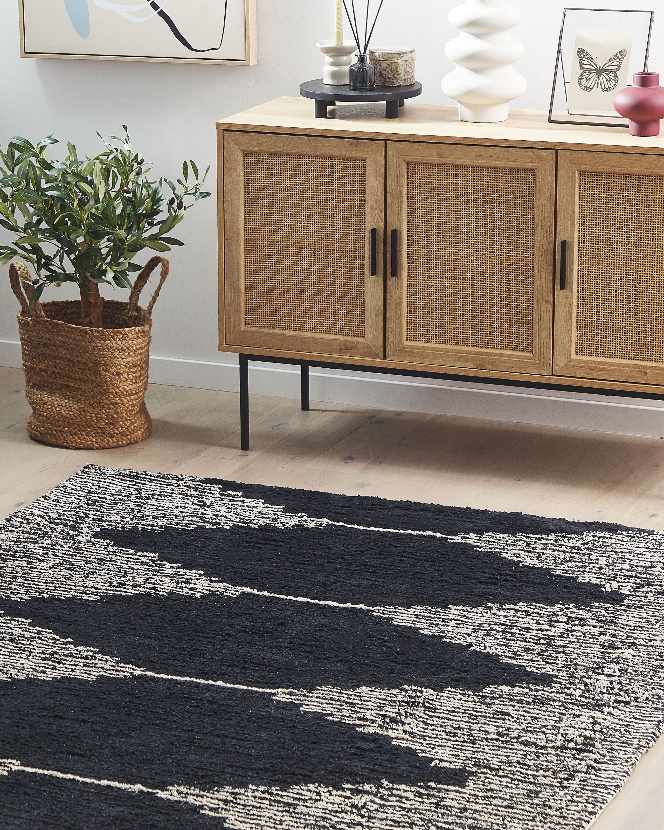 Tapis BATHINDA Noir/blanc 140 x 200 cm Coton