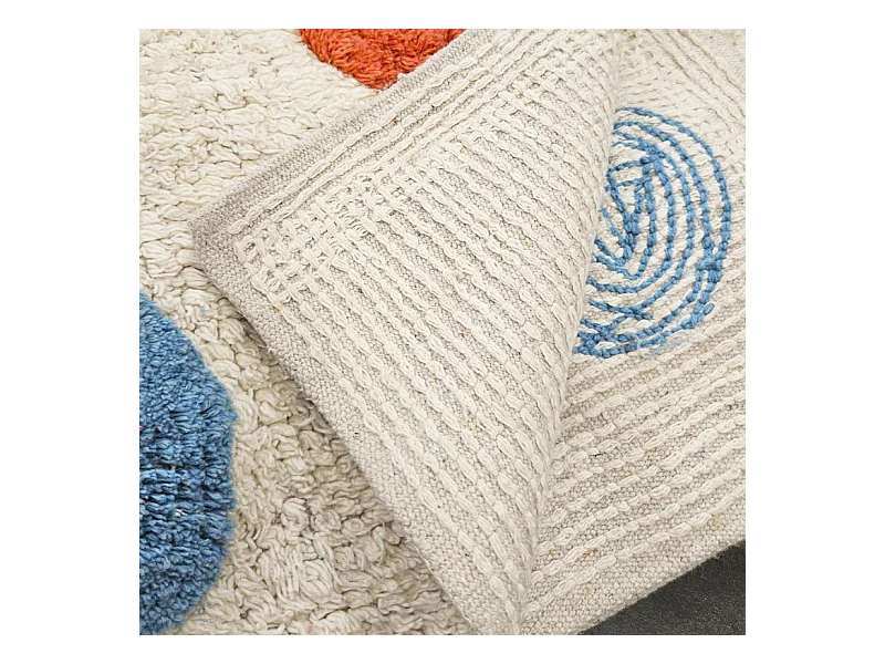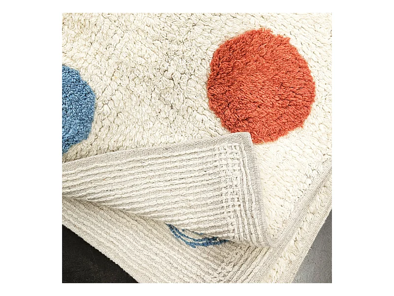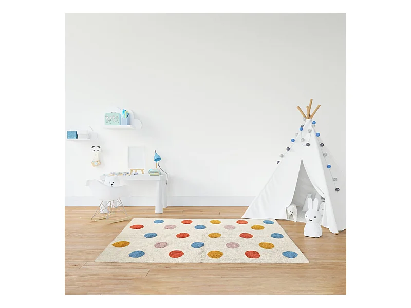 Tapis enfant 90 x 150 cm en coton shaggy avec pois multicolore - BABE