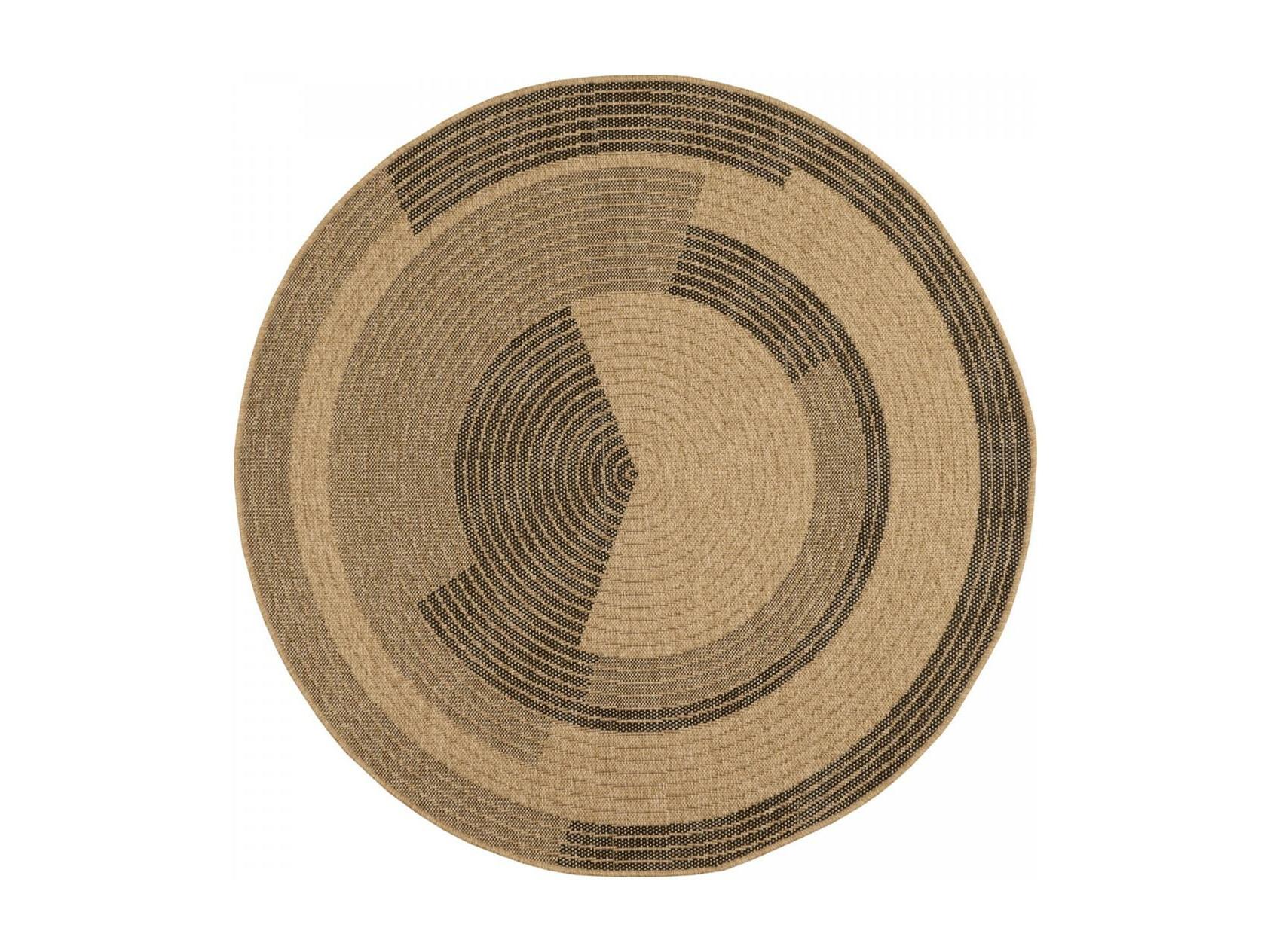 Tapis extérieur Ø160cm rond tissé kilim beige et noir JUTE ART 7