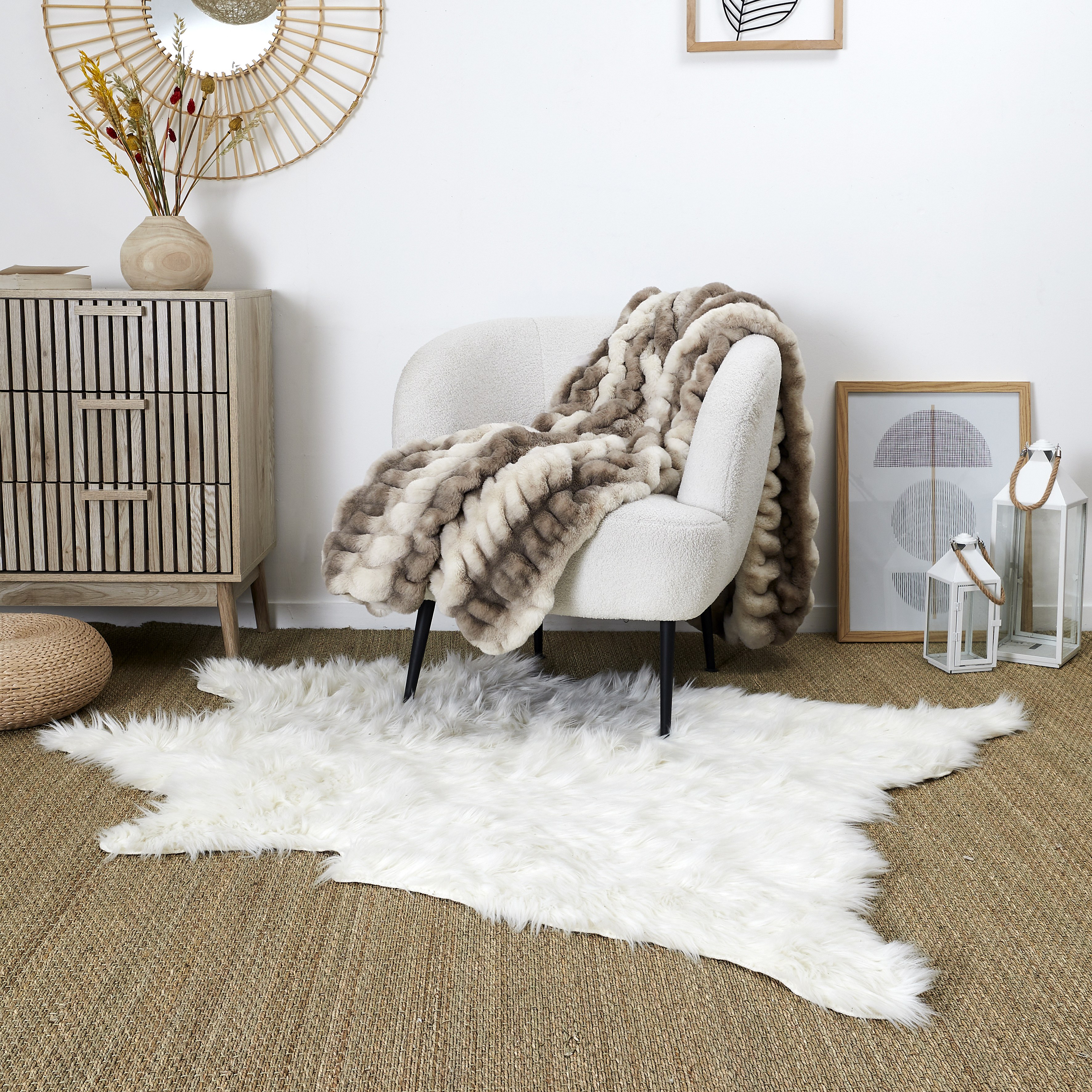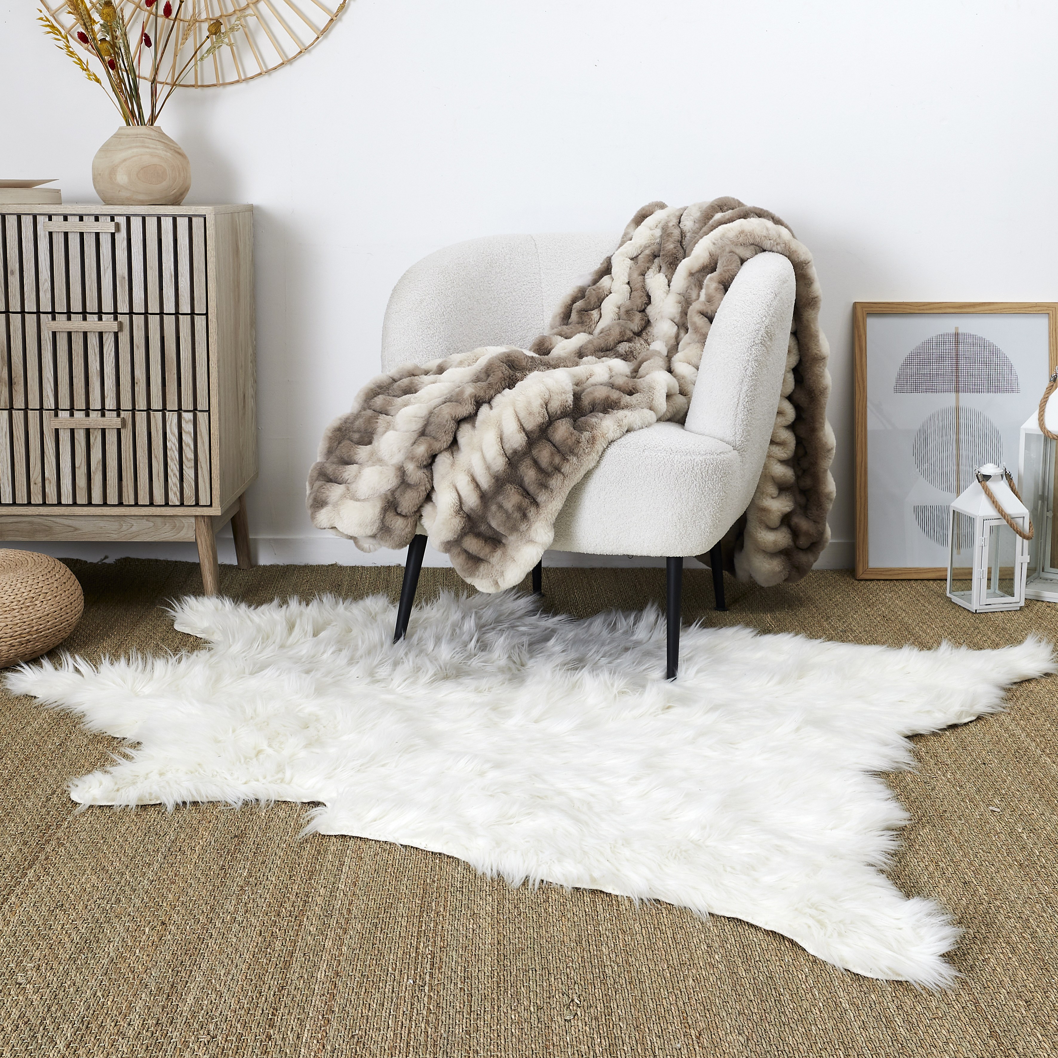 Tapis de Salon Asymétrique Lambskin, Blanc, 85x50x6,5 cm, Epikasa