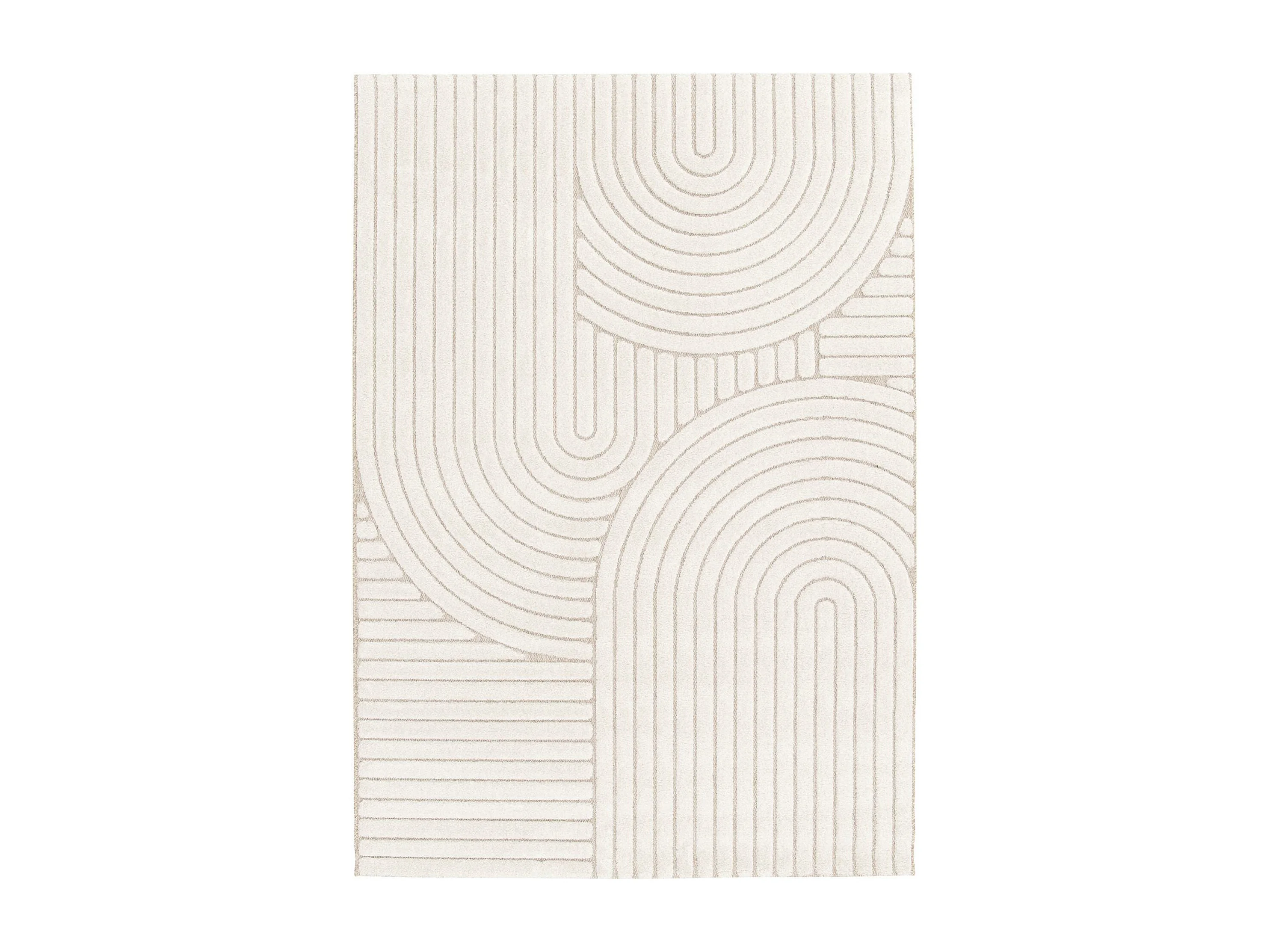 Tapis intérieur motif ethnique arches 200x290cm. poils ras. beige et crème