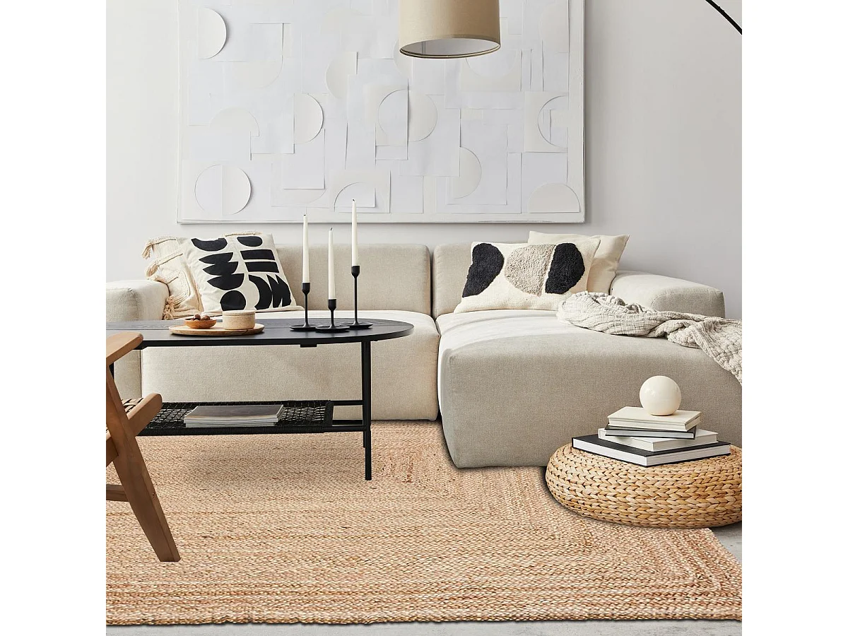Tapis jute 120x180 fait main beige et noir DUSKIA