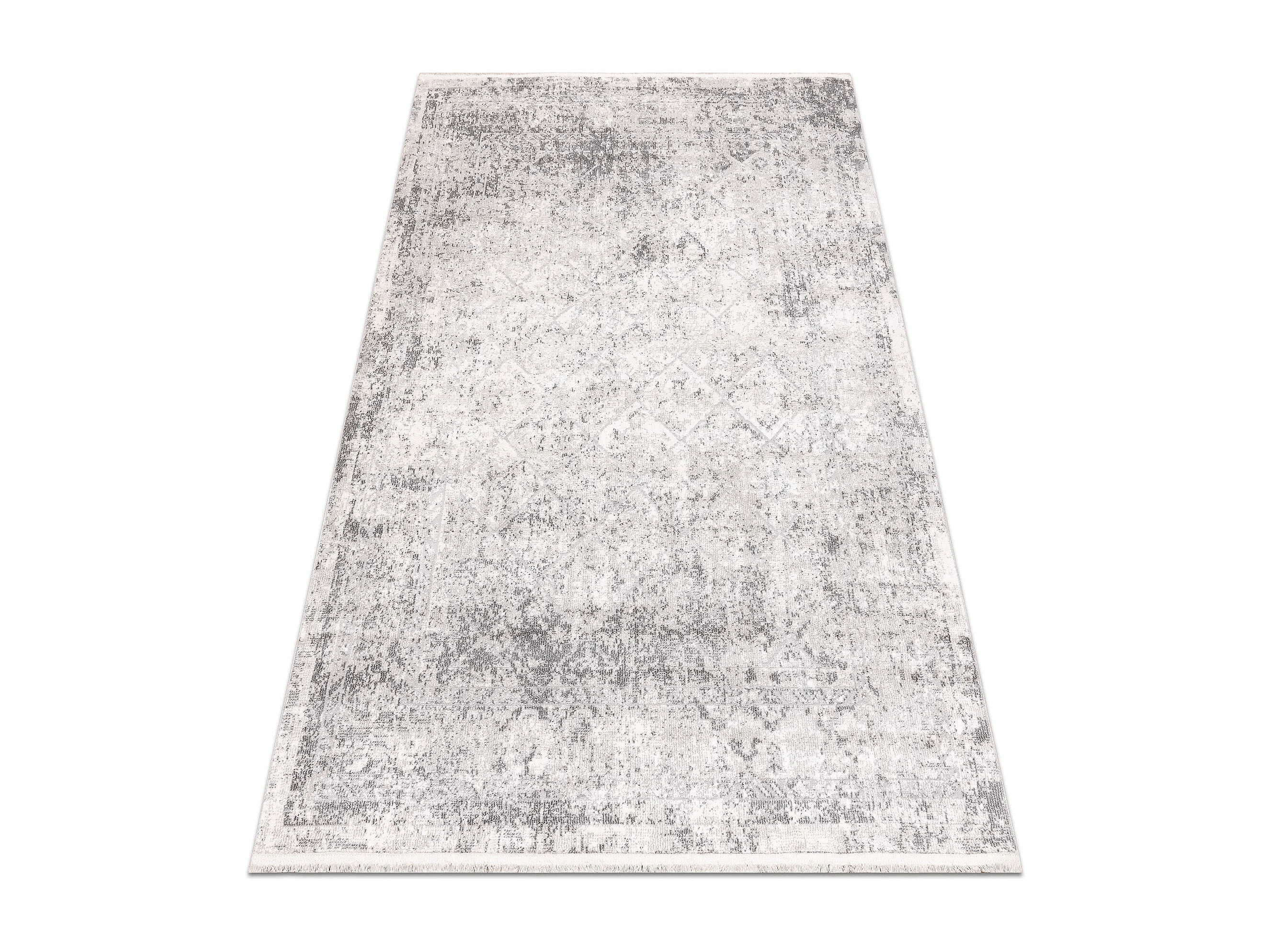Tapis moderne DISTIN 0835A gris / gris clair / blanc - Ornement, cadre 80x150 cm
