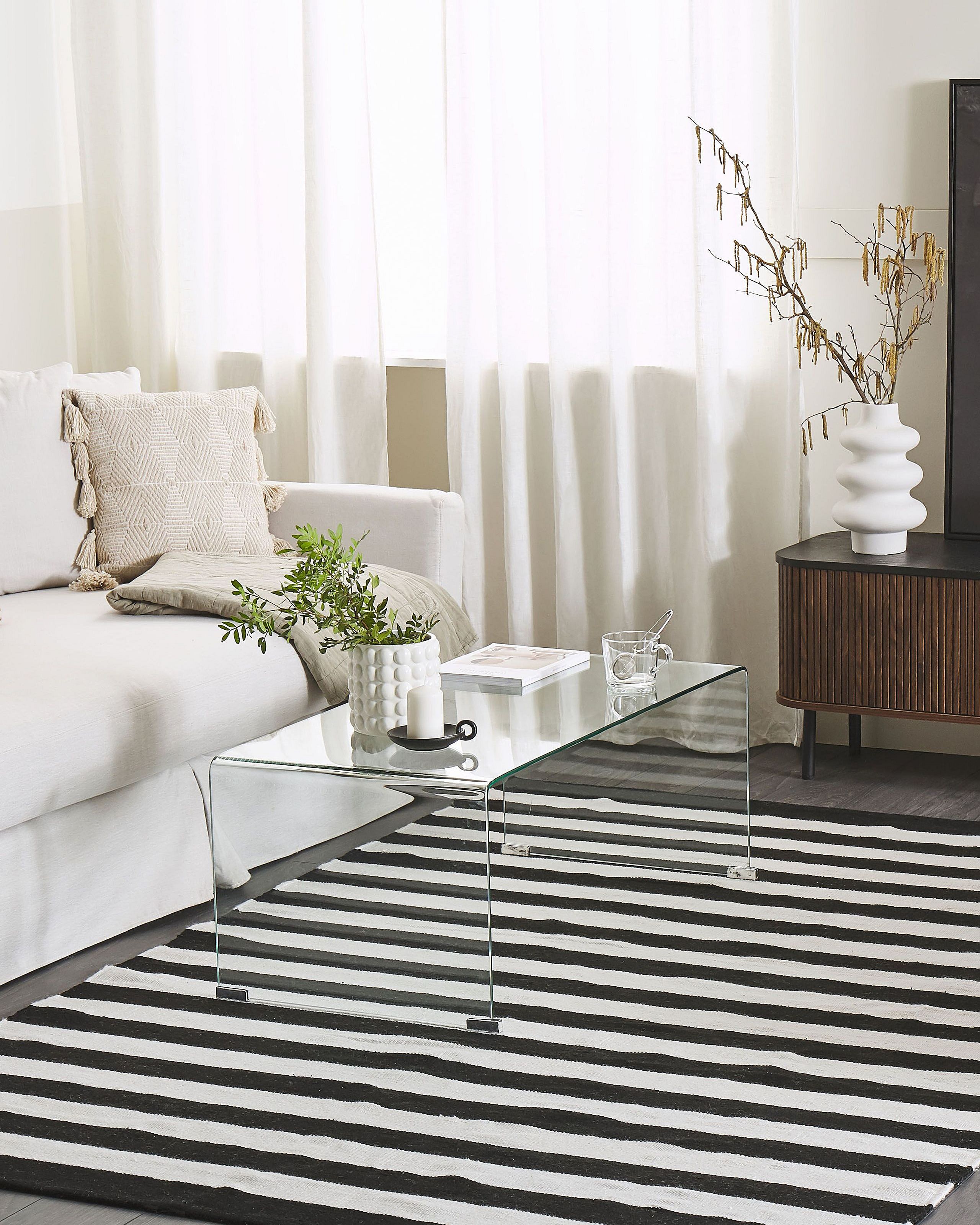 Tapis 140 x 200 cm texturé noir et blanc avec franges bicolores – SOHO