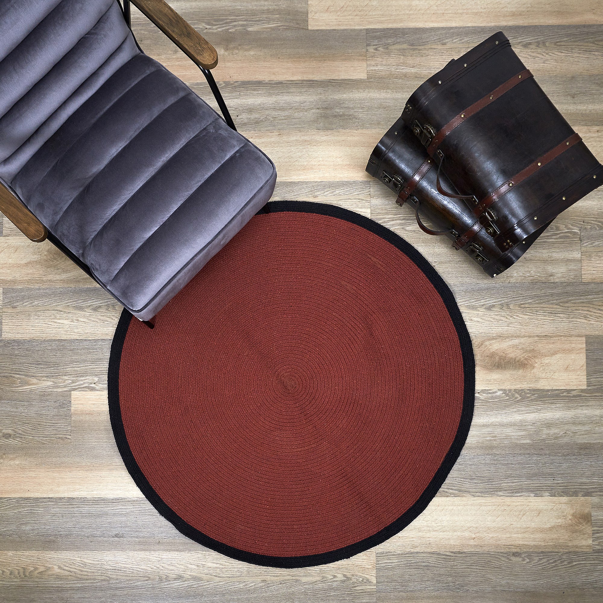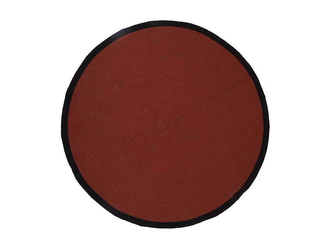 Tapis Rond Coton Terracotta Bord Noir 120cm Rouge