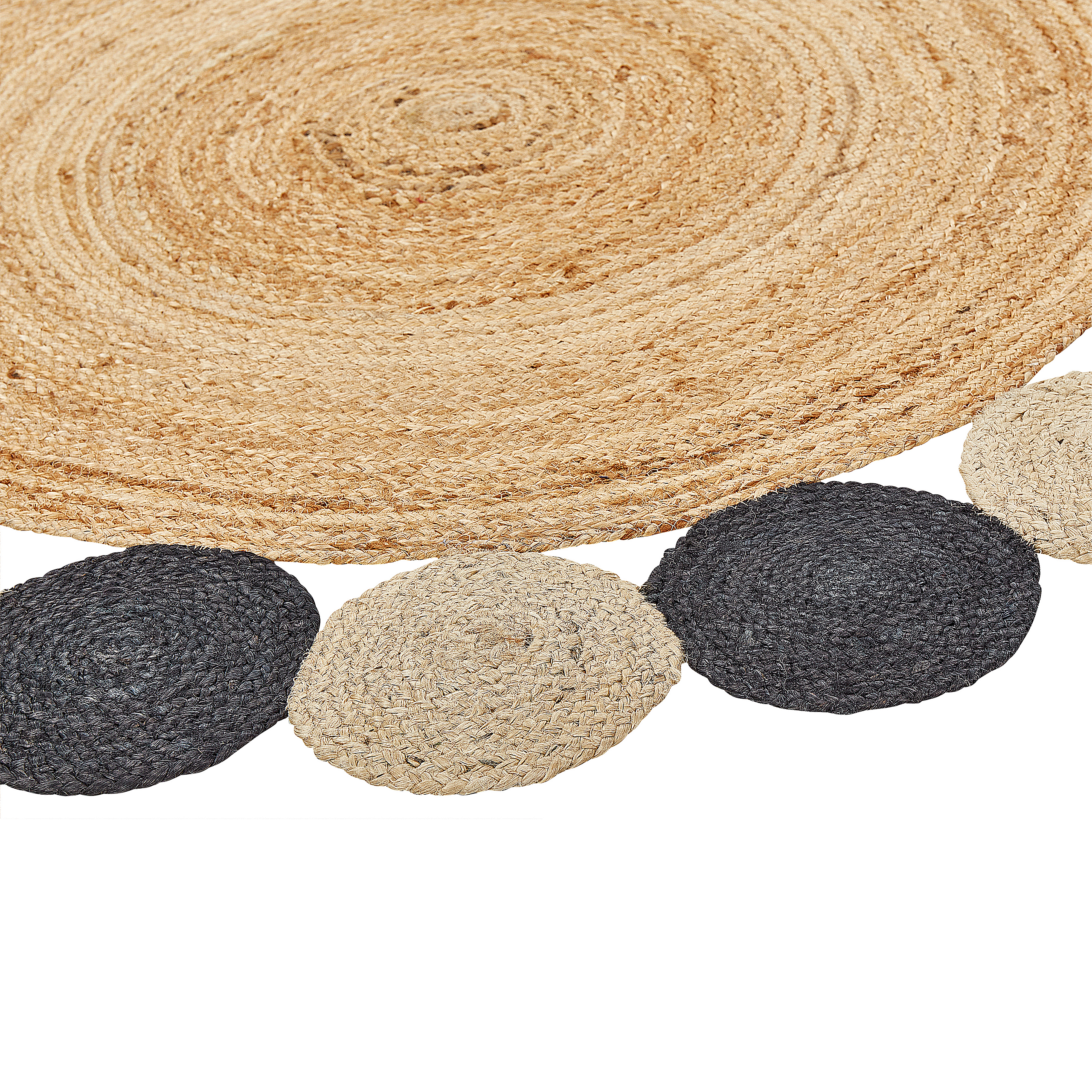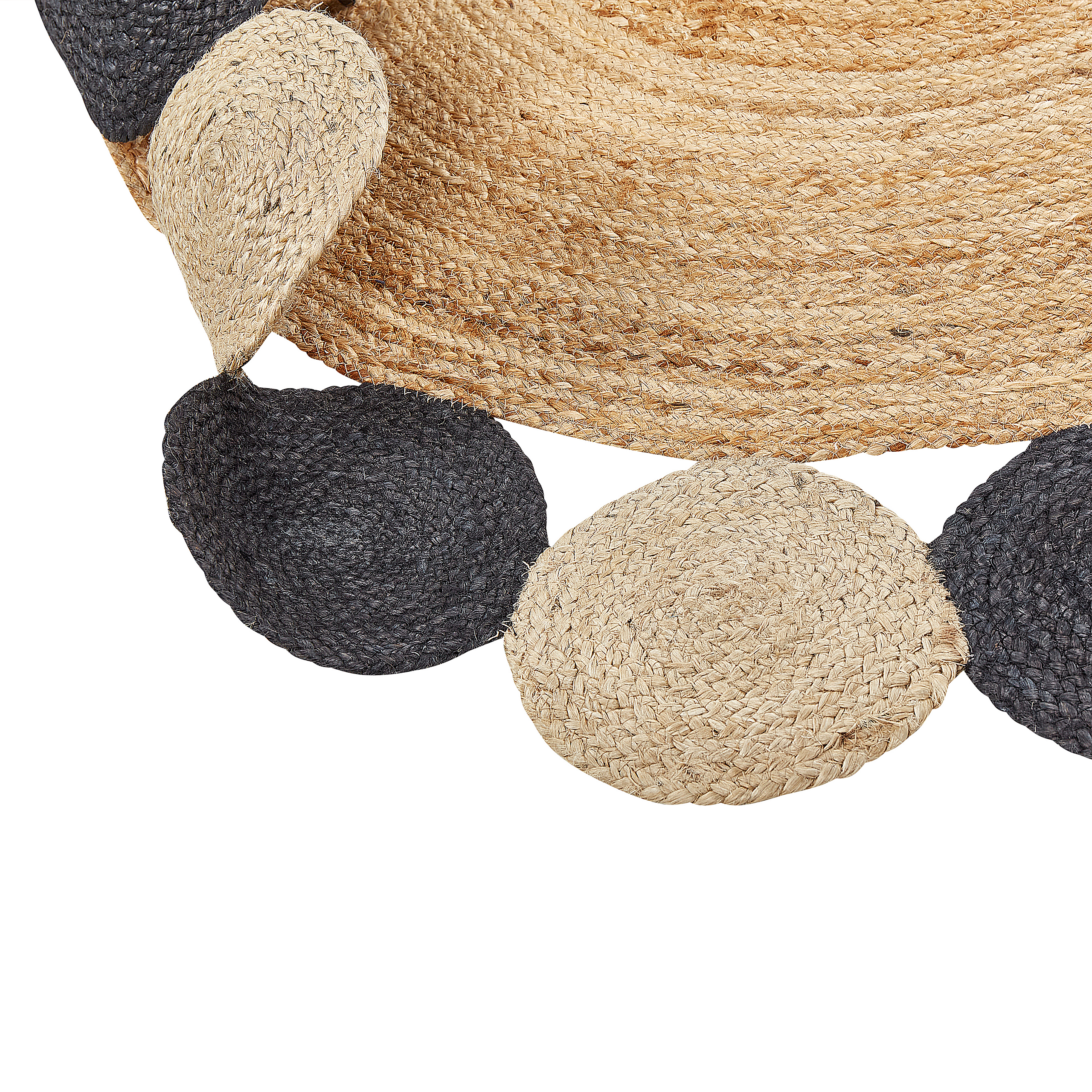 Tapis Rond Jute Pompons Blanc 80cm Noir