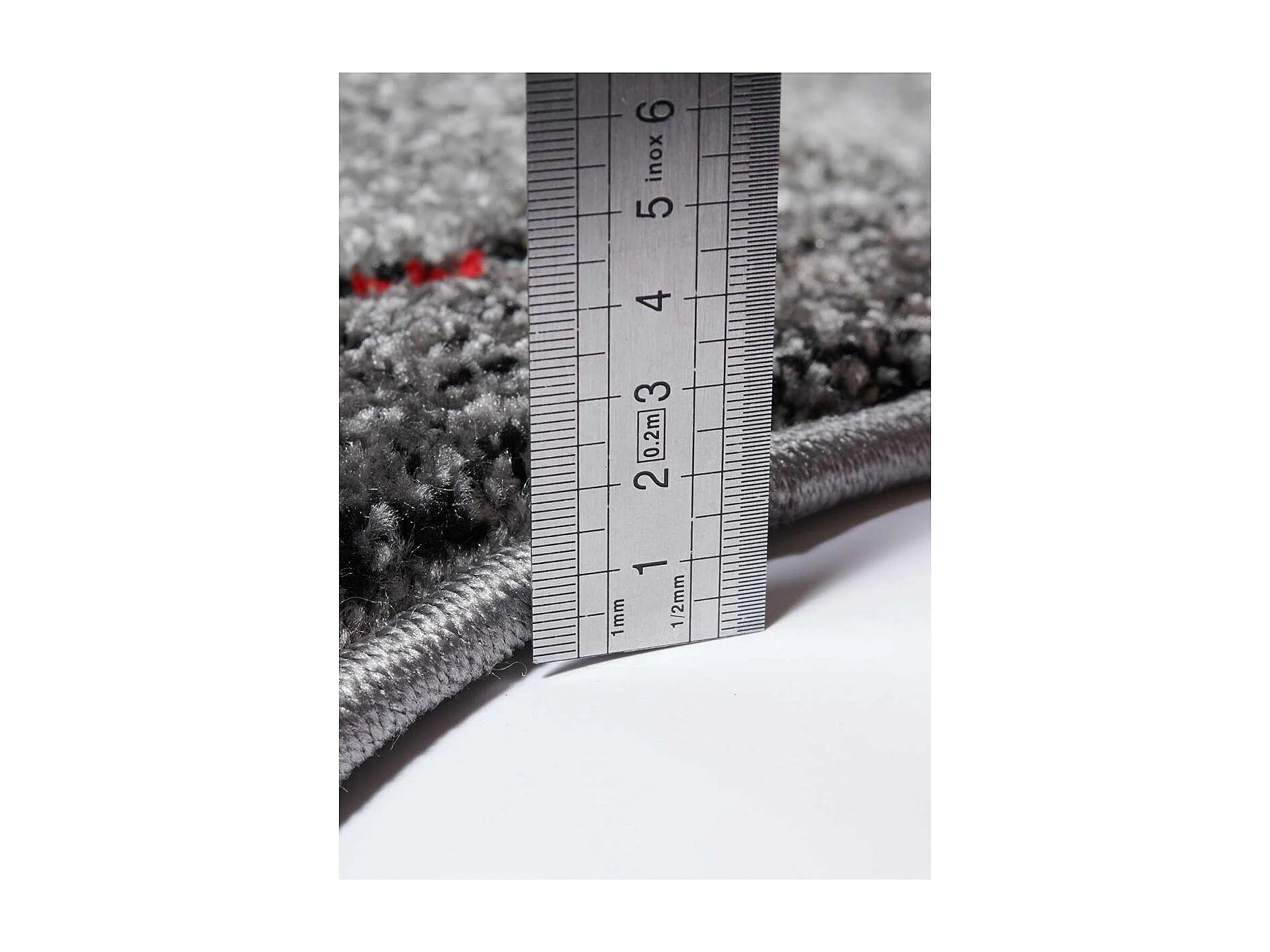 tapis salon Ø140cm tissé rouge et gris rond motif géométrique MADILA R