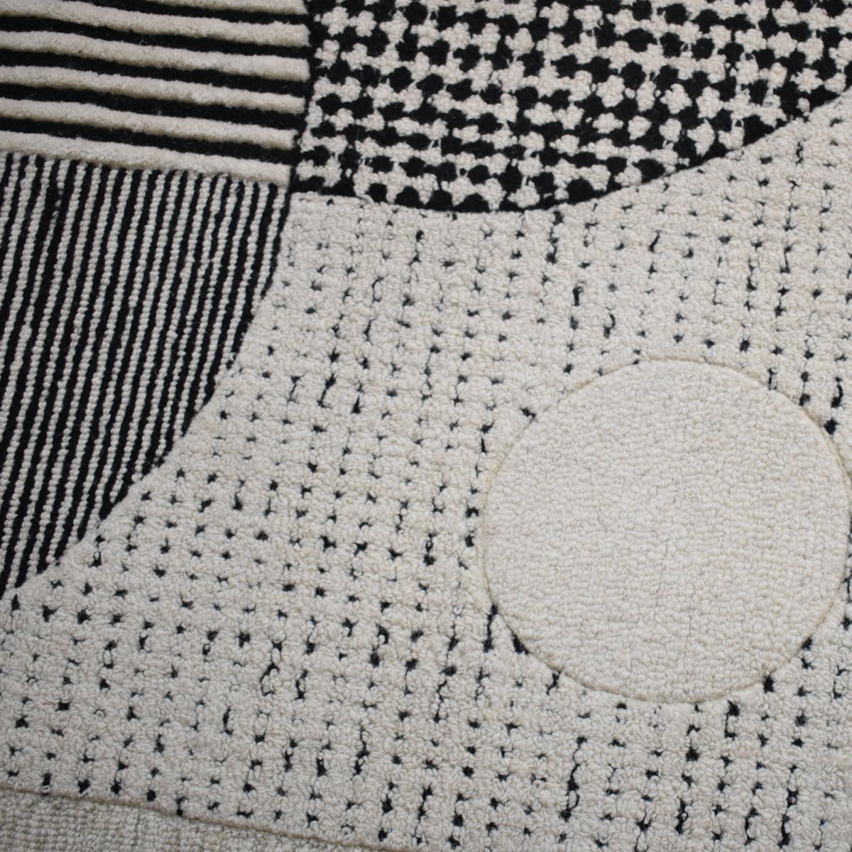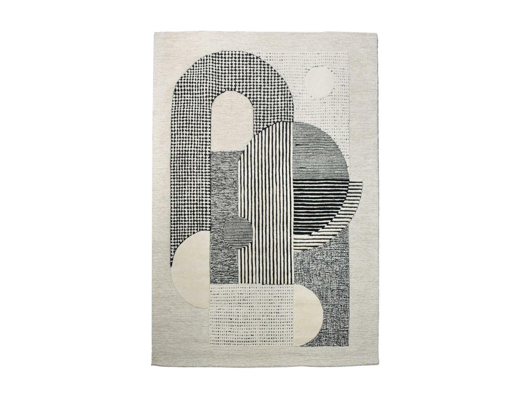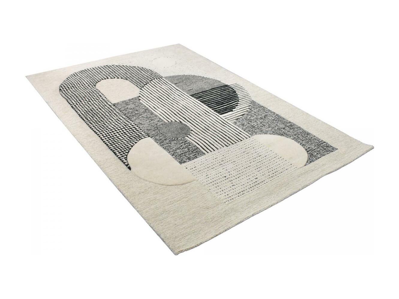 tapis salon 200x290 fait à la main en laine crème rectangle motif géométrique
