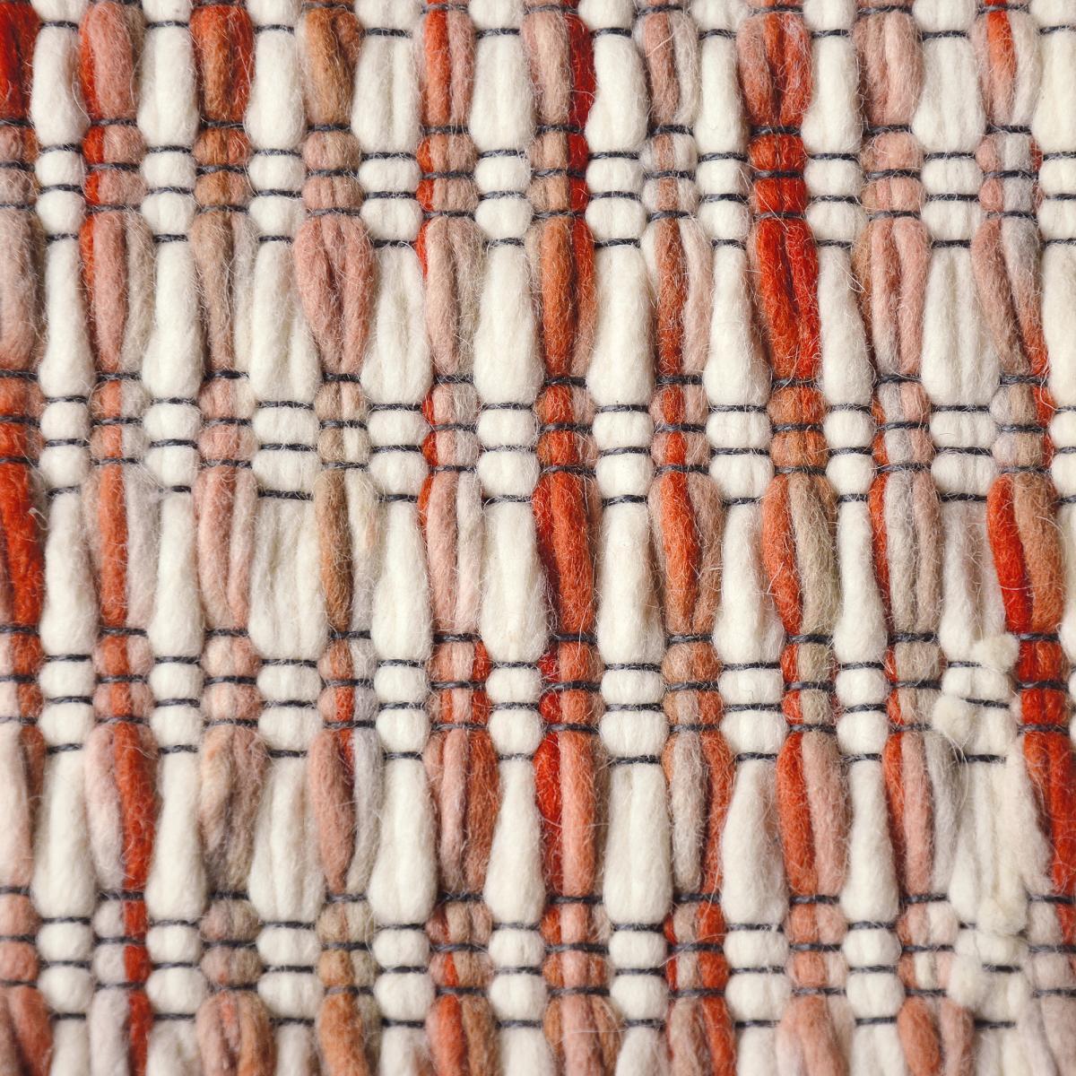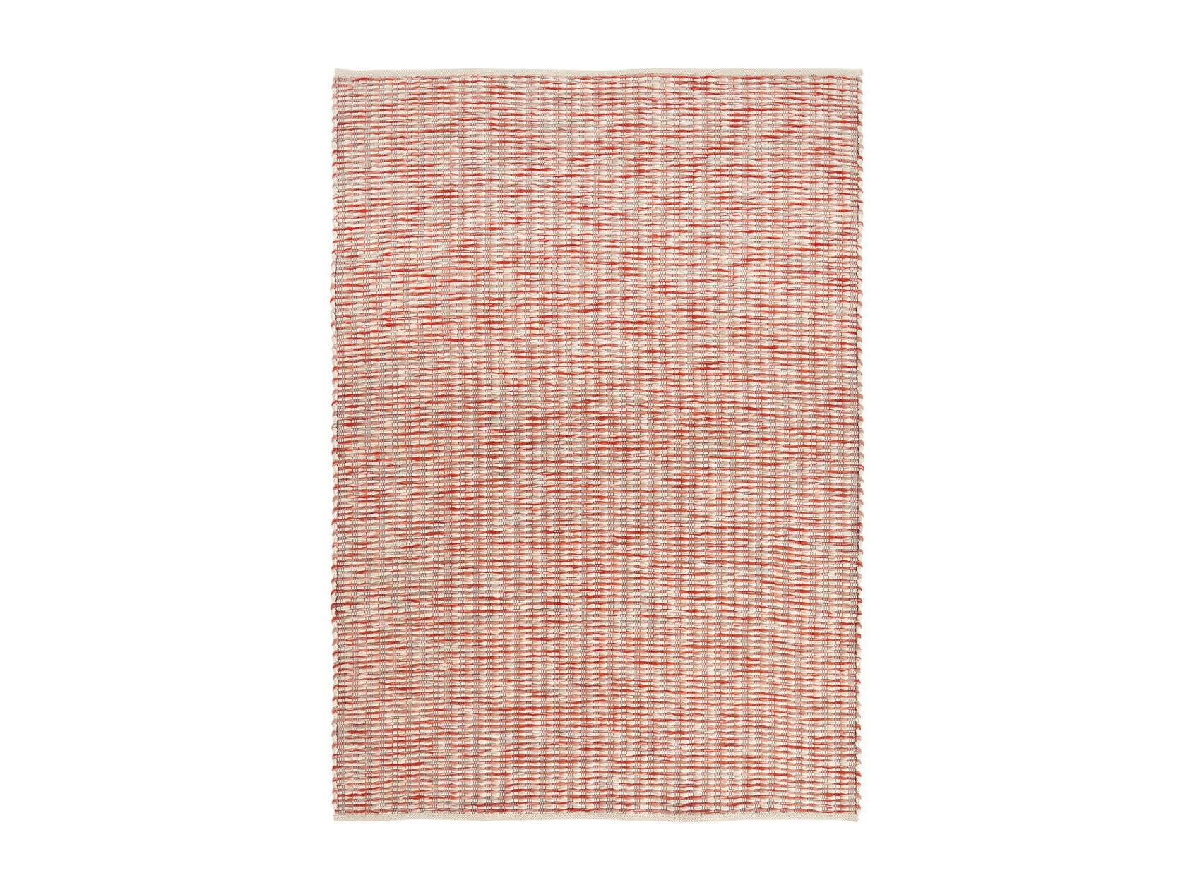 tapis salle de gym 160x230 fait main en laine crème et rouge motif faux uni