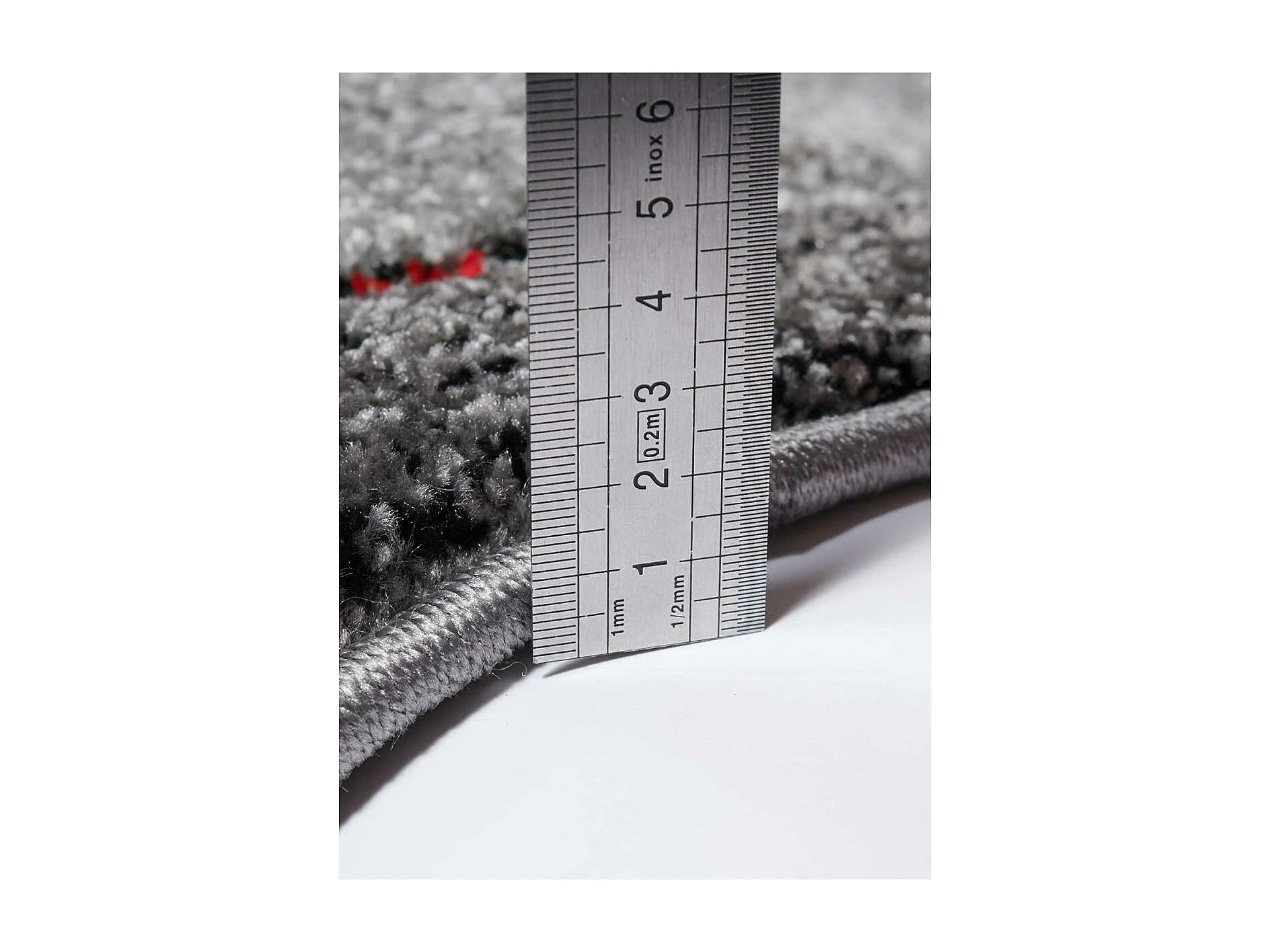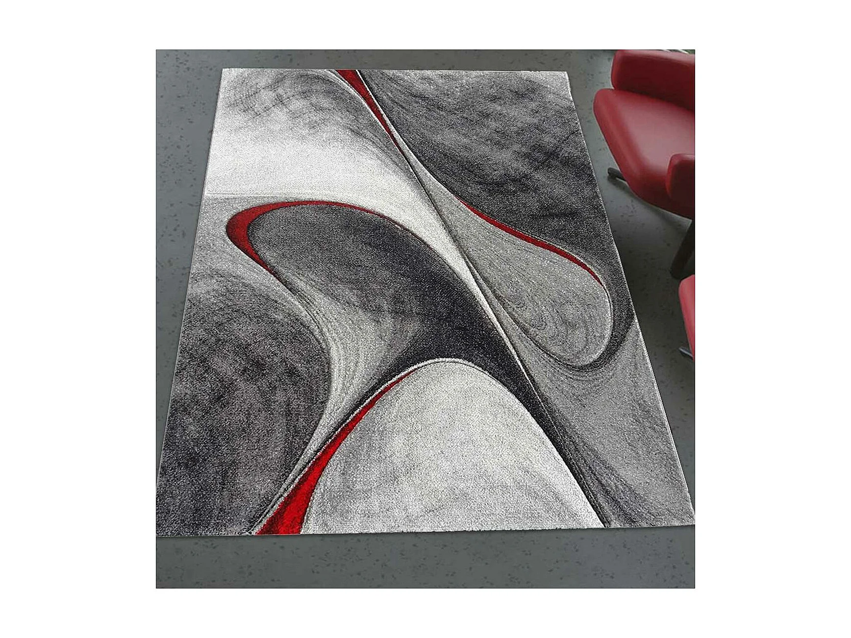 tapis salon Ø140cm tissé rouge et gris rond motif géométrique MILAR