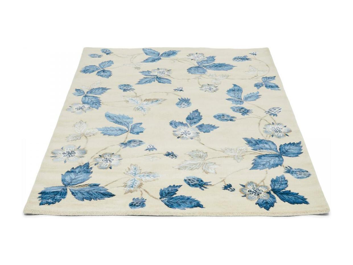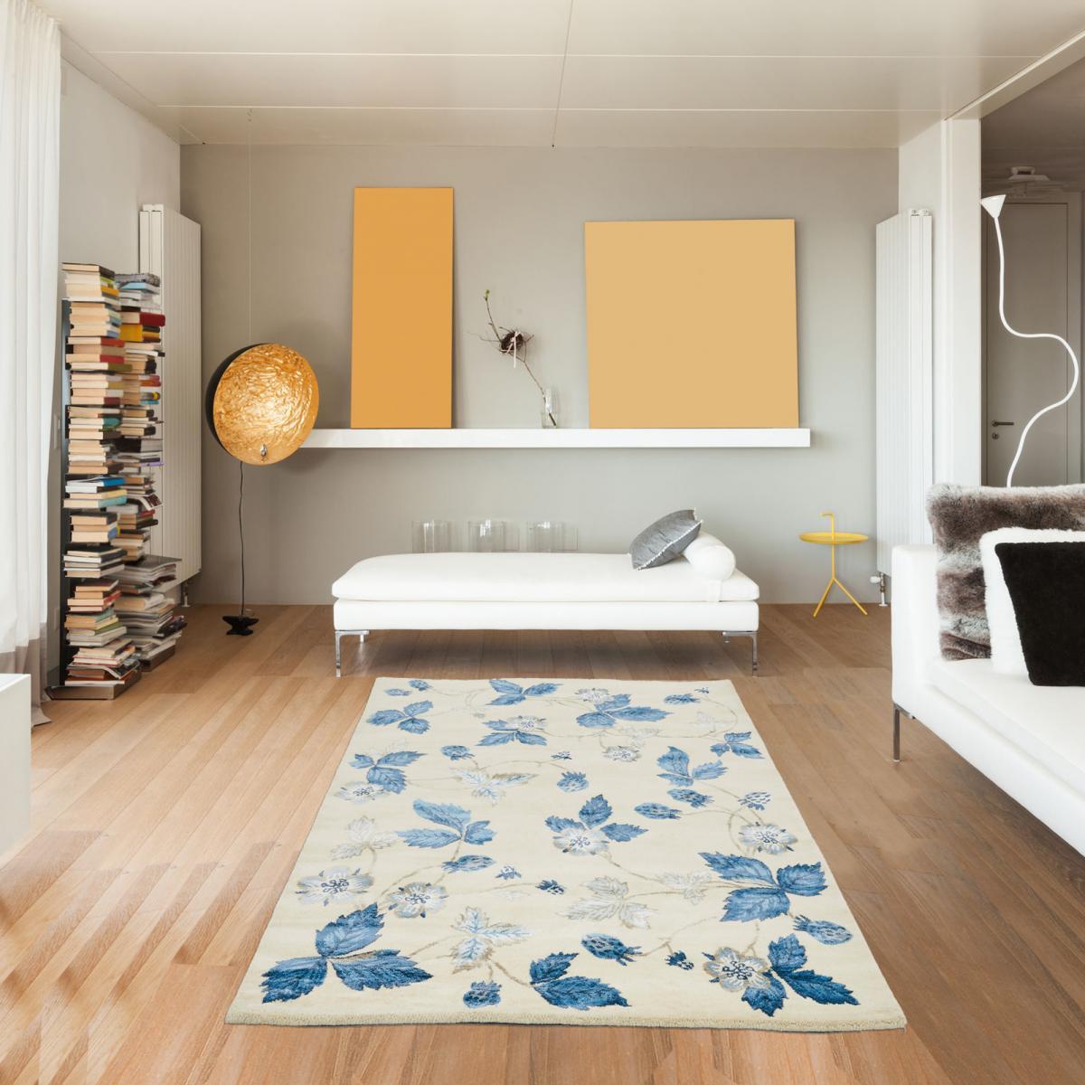 tapis salle à manger 250x350 fait à la main en laine crème motif floral