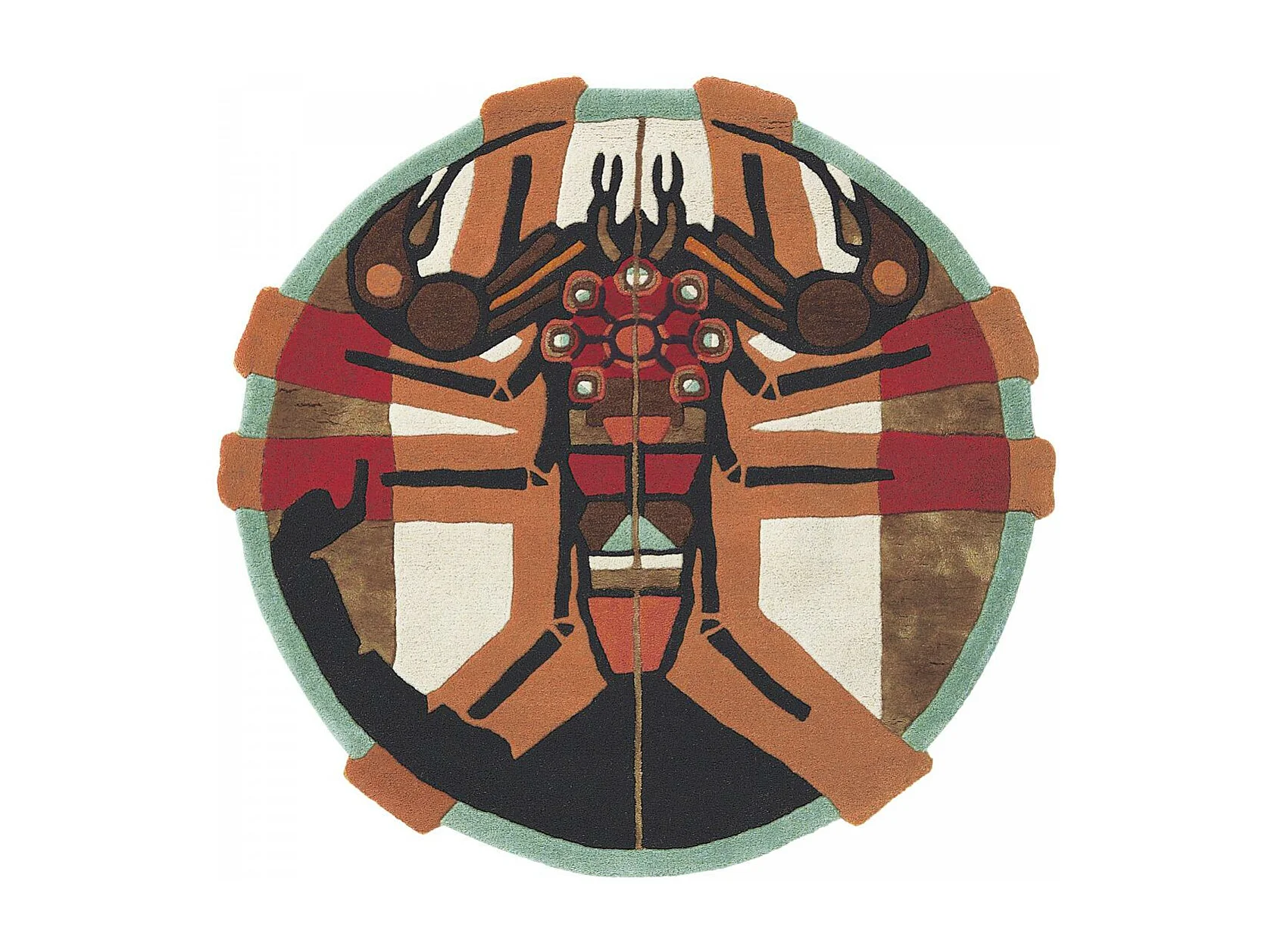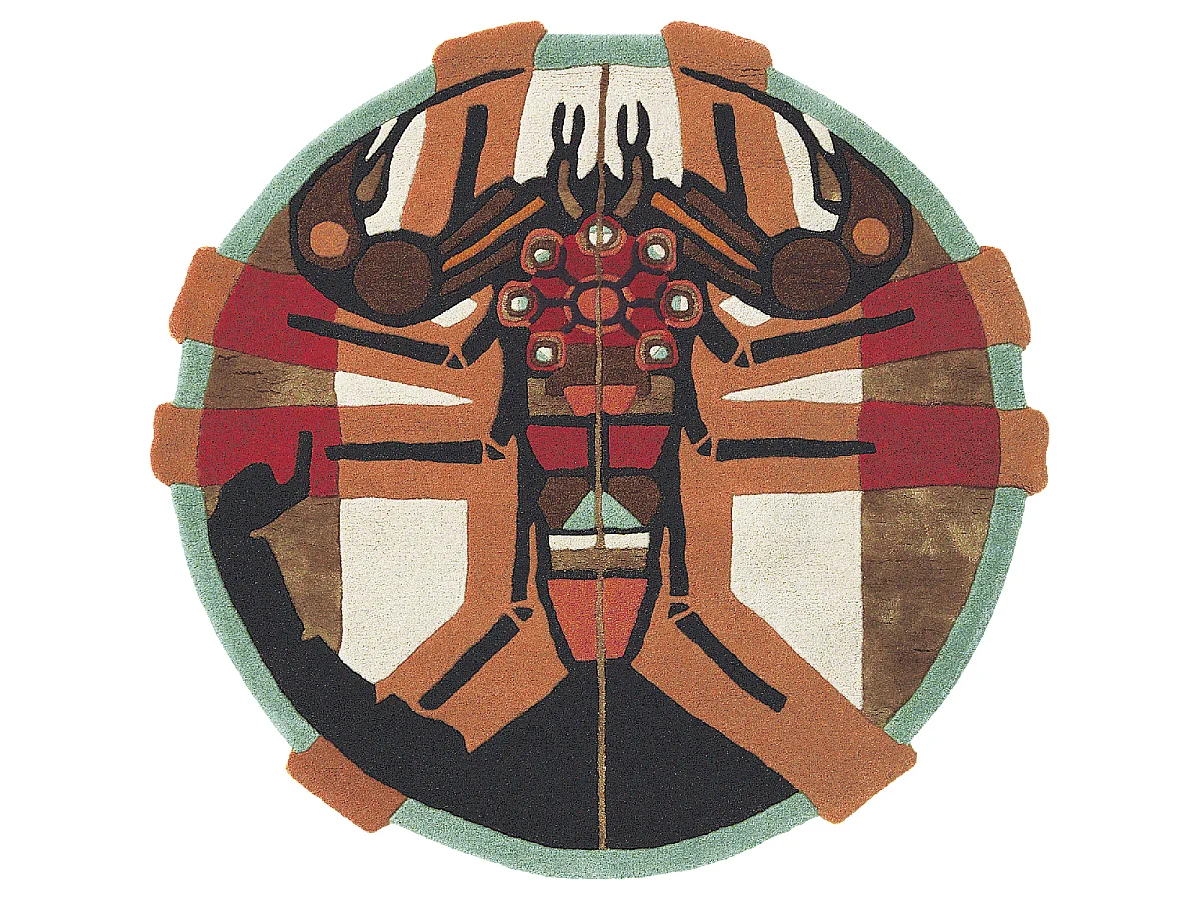 tapis entrée 100x100 fait à la main en laine multicolore motif fresque