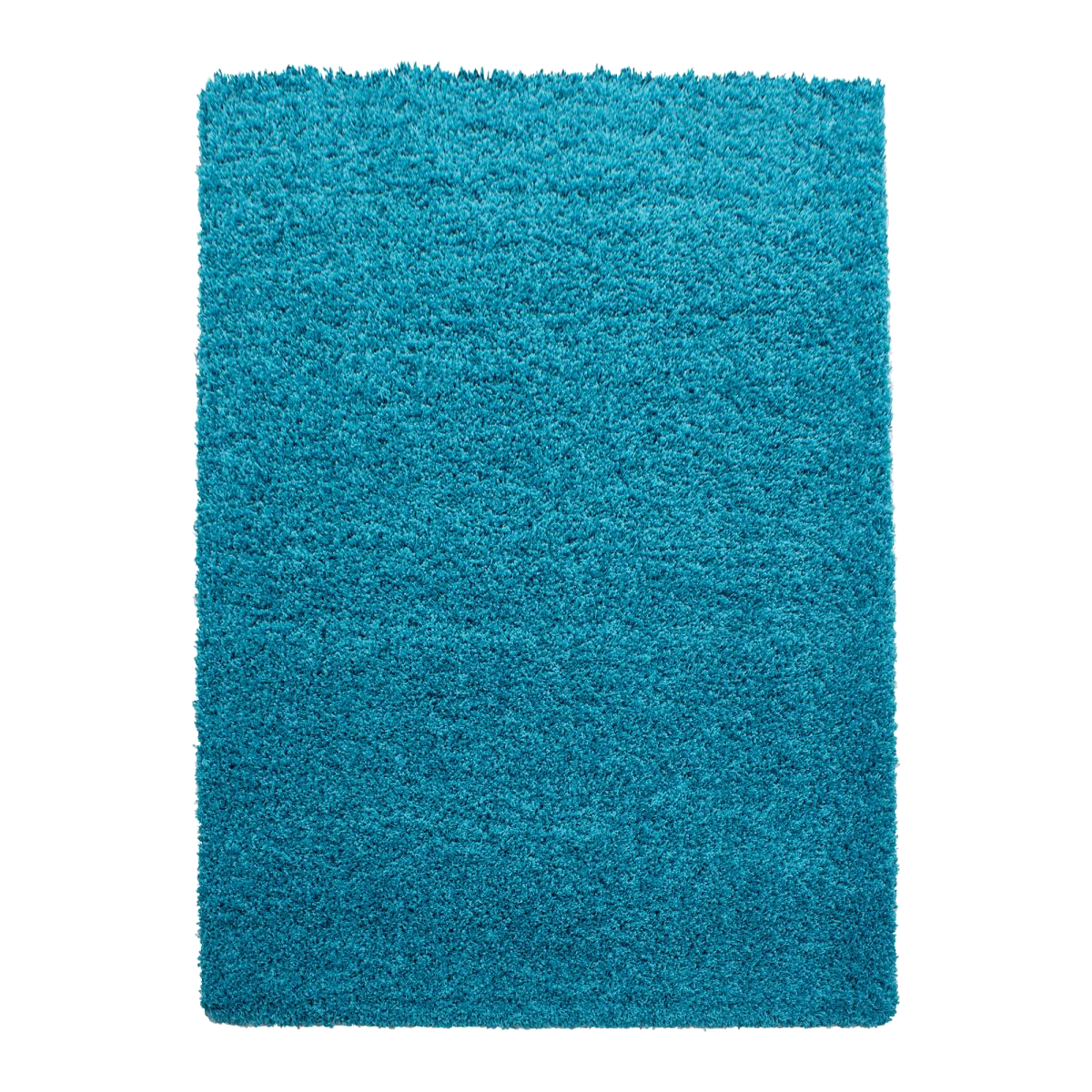 Tapis poils longs shaggy 80x250 rectangle tissé turquoise motif uni UNI L