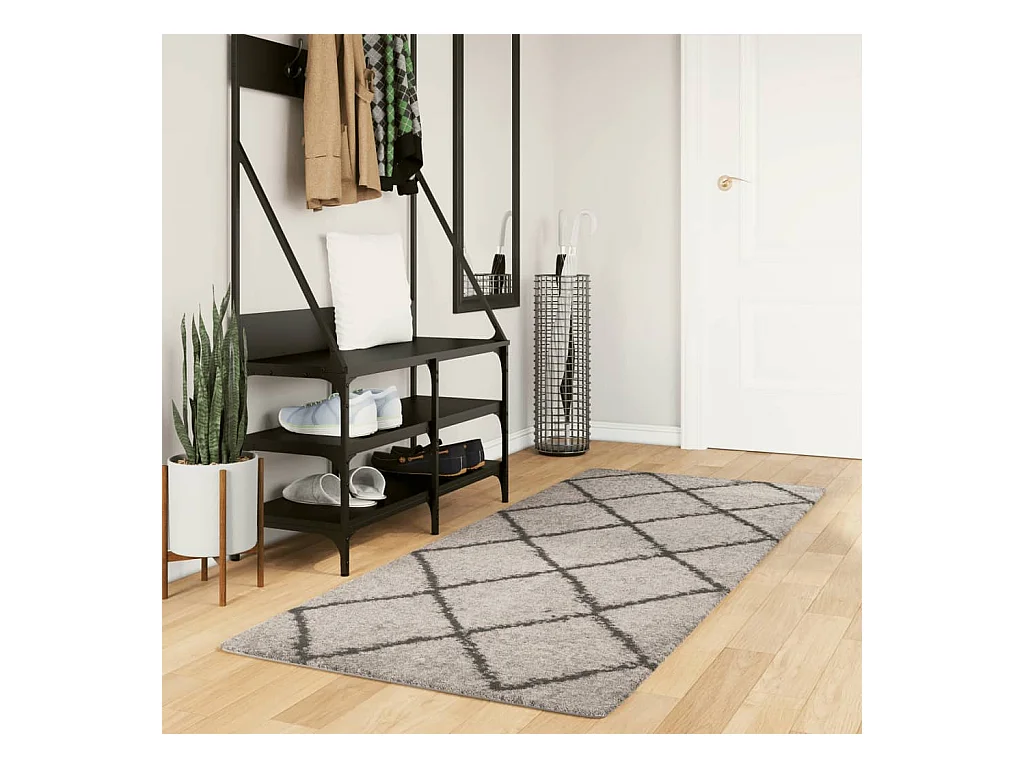 Tapis shaggy à poils longs moderne beige anthracite 80x250 cm