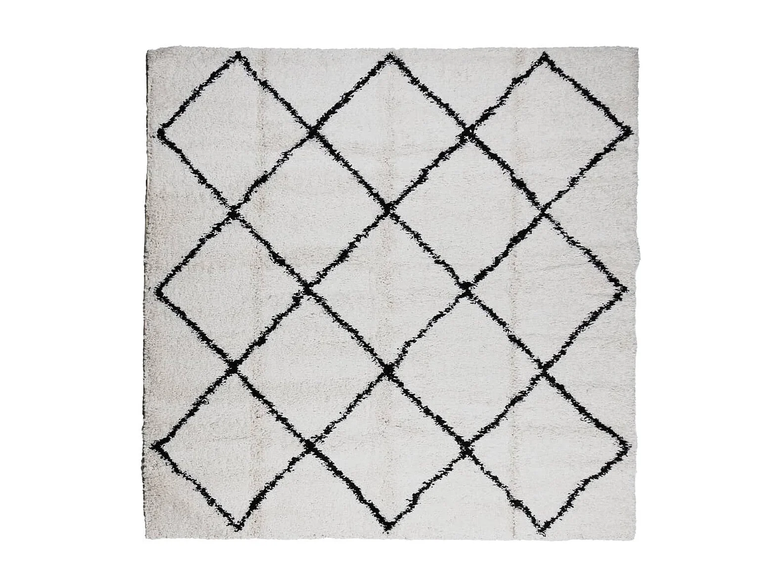 Tapis shaggy à poils longs moderne noir et crème 240x240 cm