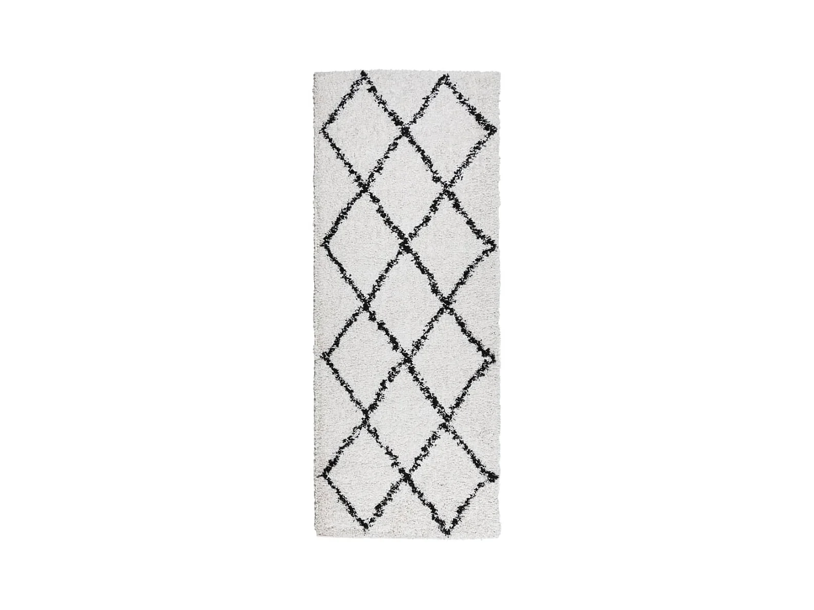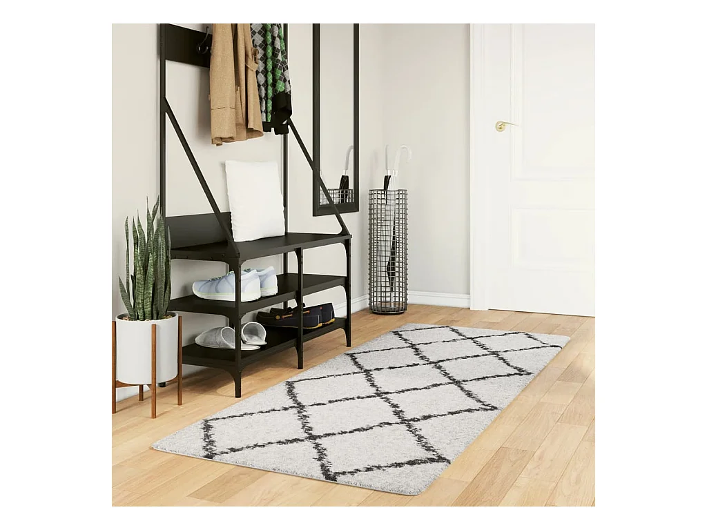 Tapis shaggy à poils longs moderne crème et noir 80x250 cm