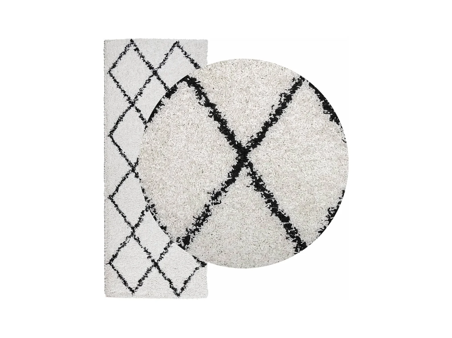 Tapis shaggy à poils longs moderne crème et noir 80x200 cm