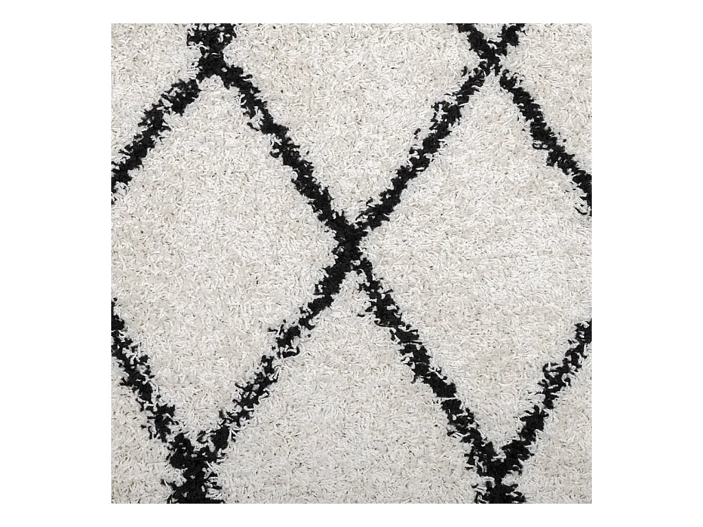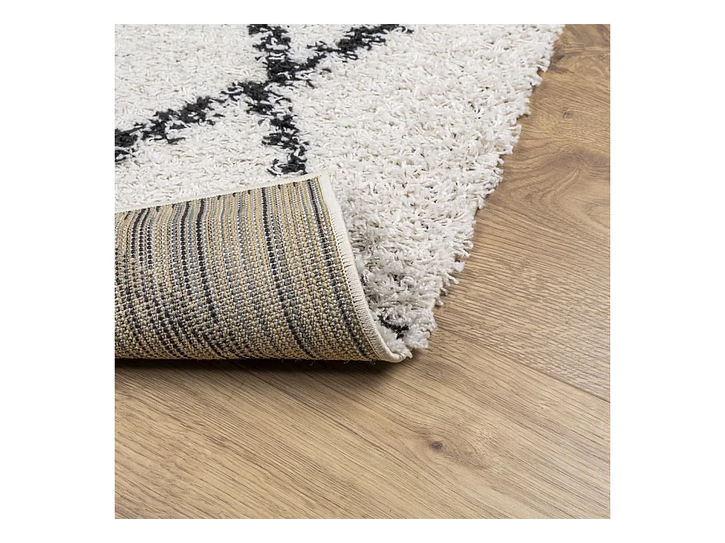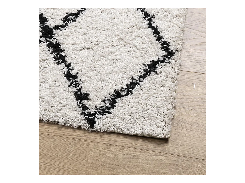 Tapis shaggy à poils longs moderne crème et noir 100x200 cm