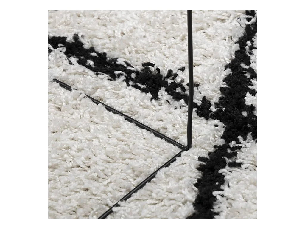 Tapis shaggy à poils longs moderne noir et crème 140x200 cm