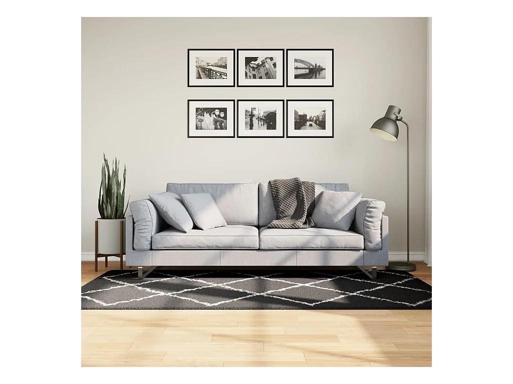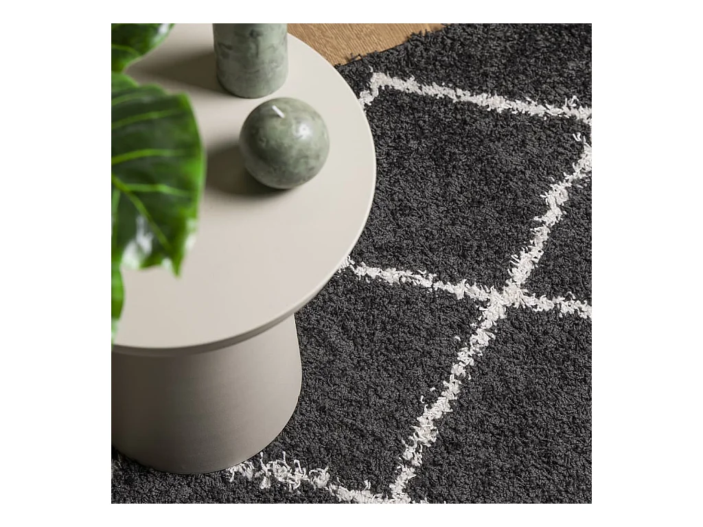 Tapis shaggy à poils longs moderne noir et crème 140x200 cm