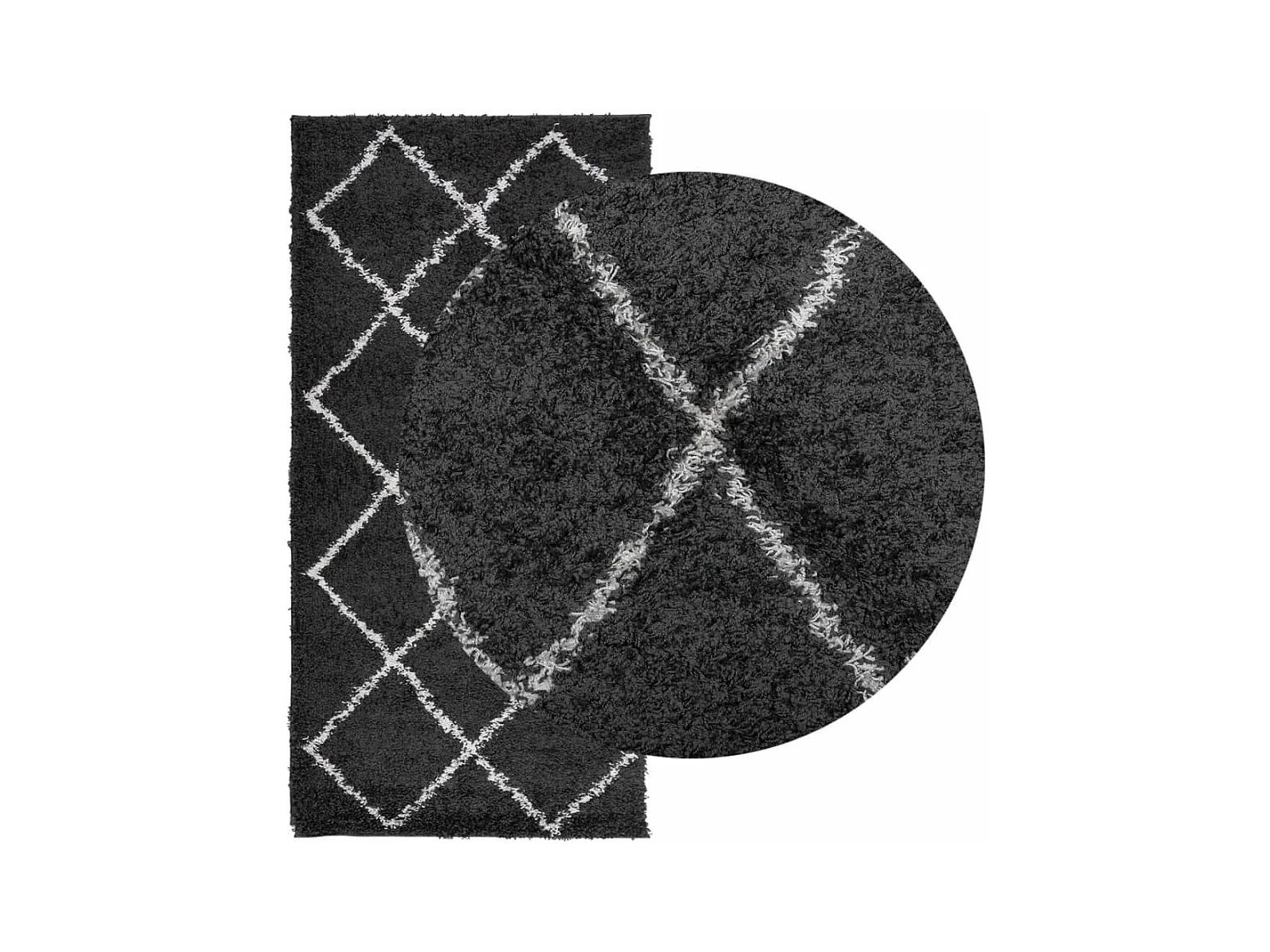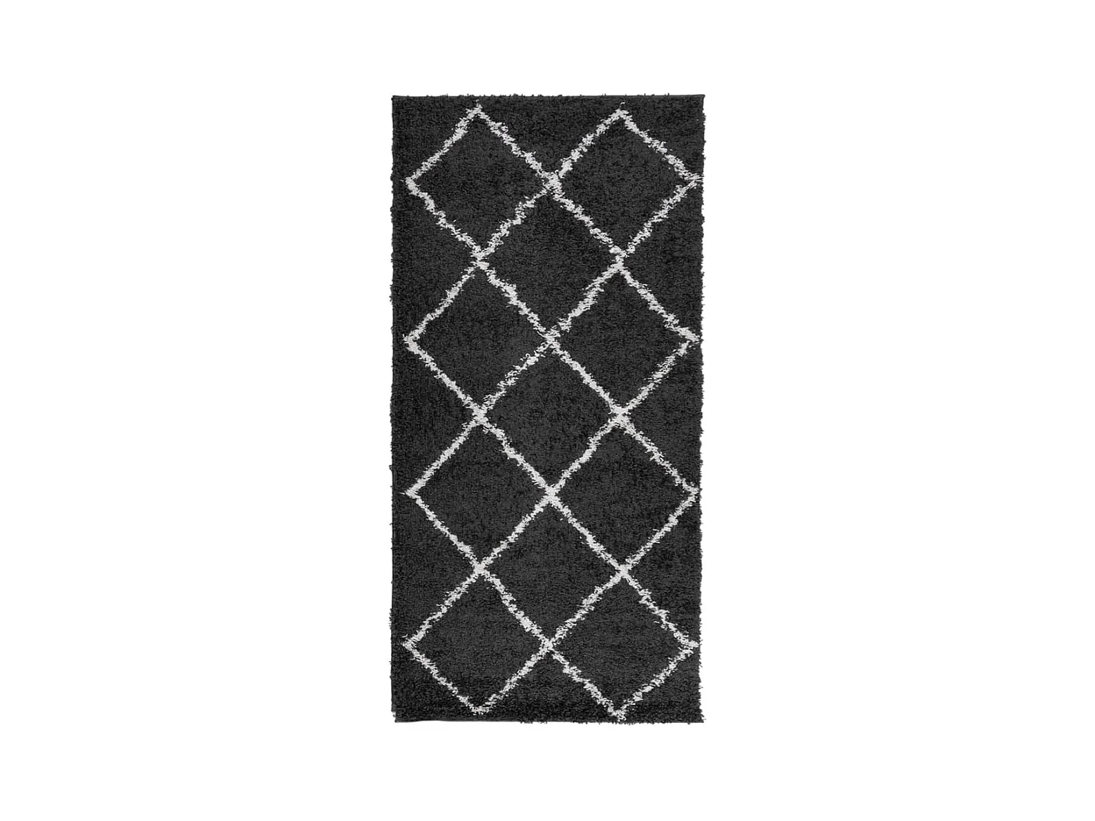 Tapis shaggy à poils longs moderne noir et crème 80x200 cm