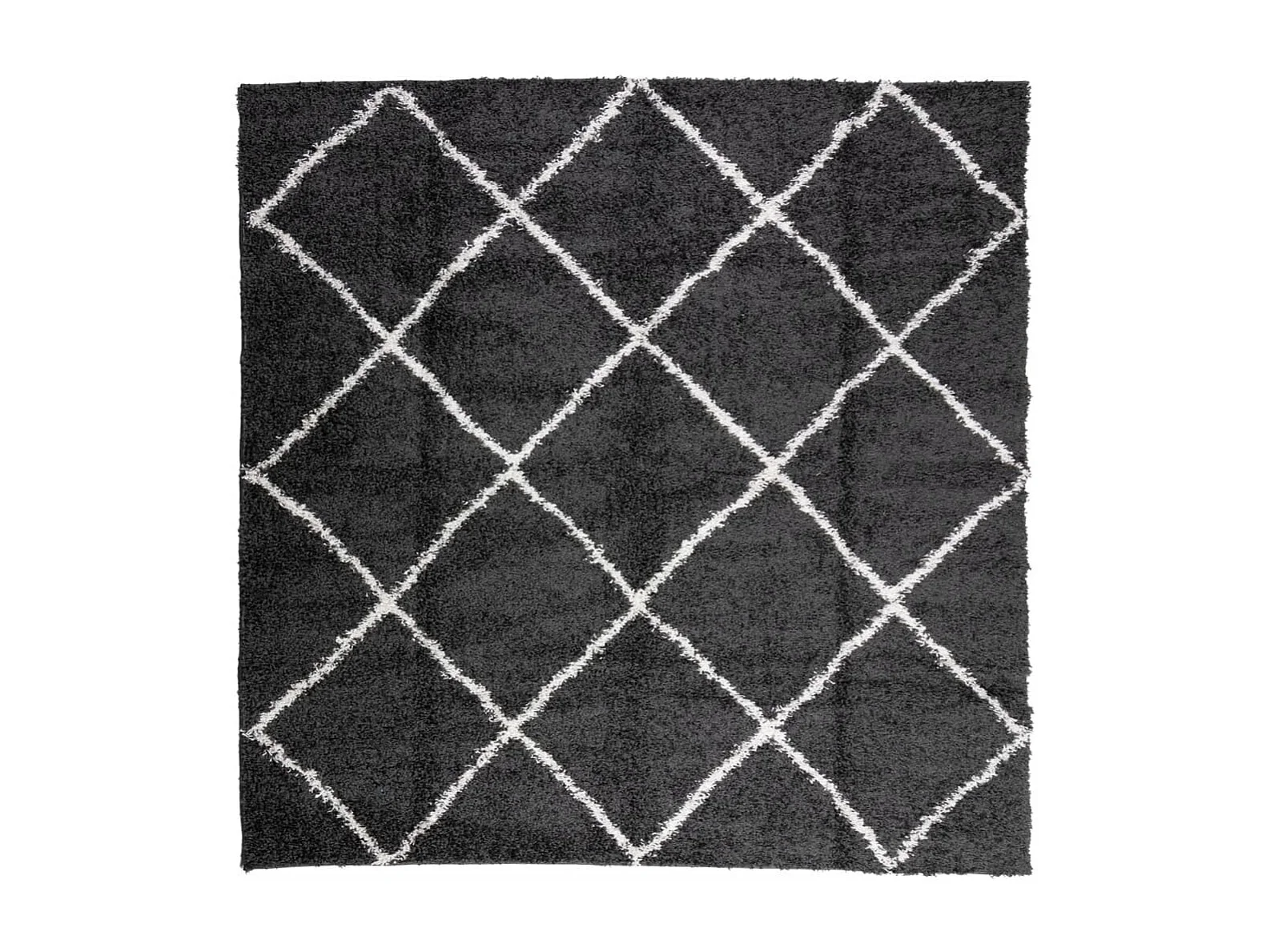 Tapis shaggy à poils longs moderne noir et crème 240x240 cm