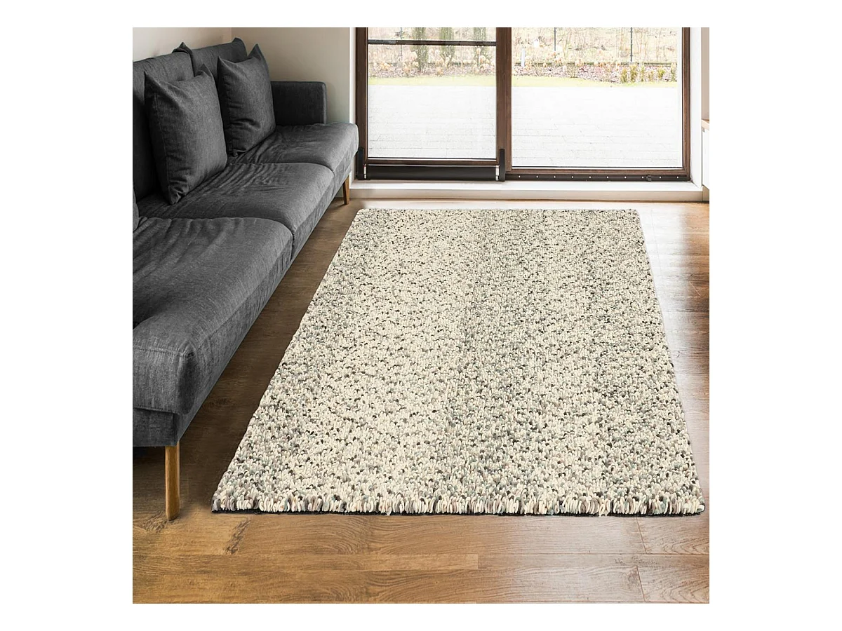 Tapis longs poils shaggy 170x240 rectangle tissé beige et gris en laine
