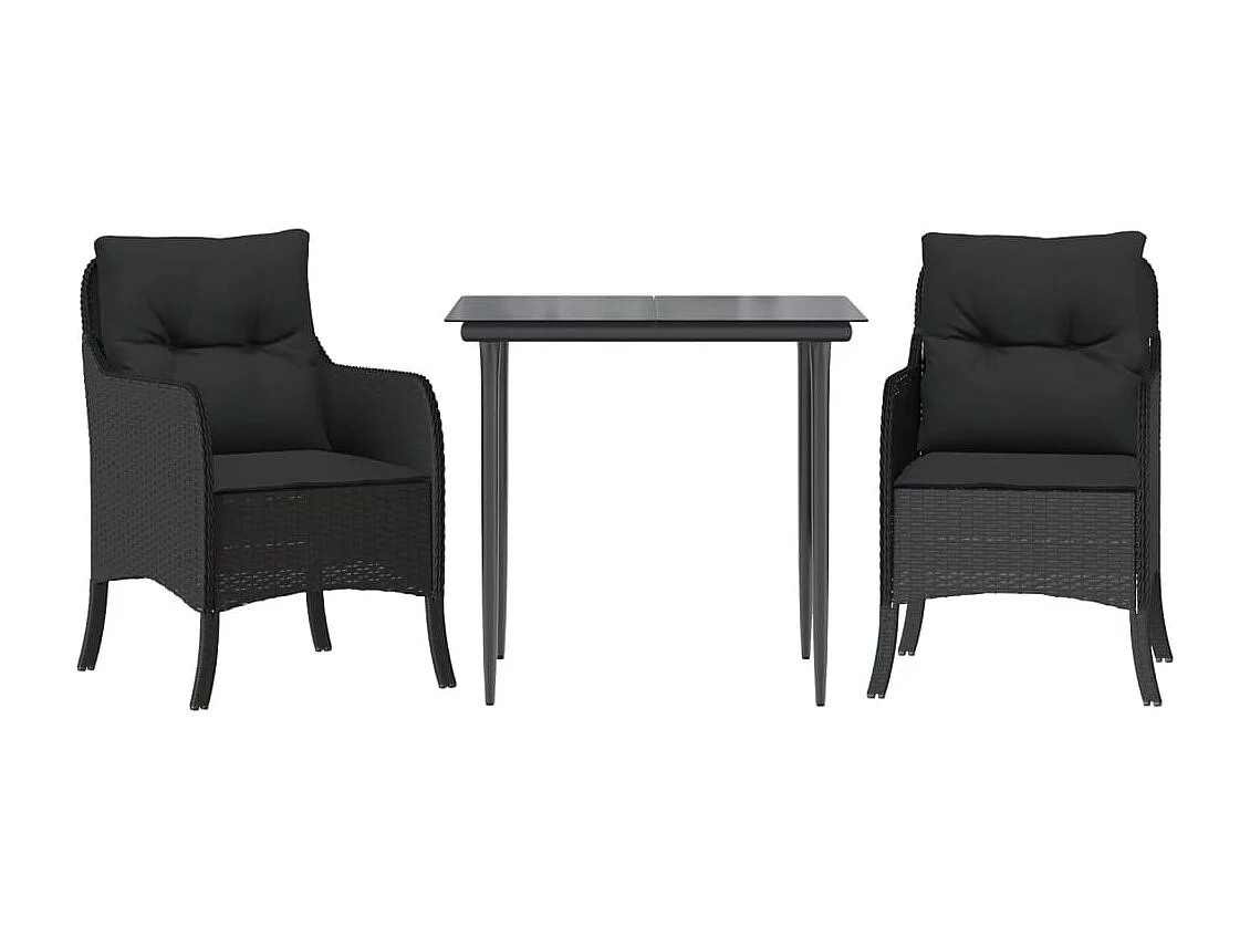 Tavian Ensemble à manger de jardin avec coussins 3 pcs Noir