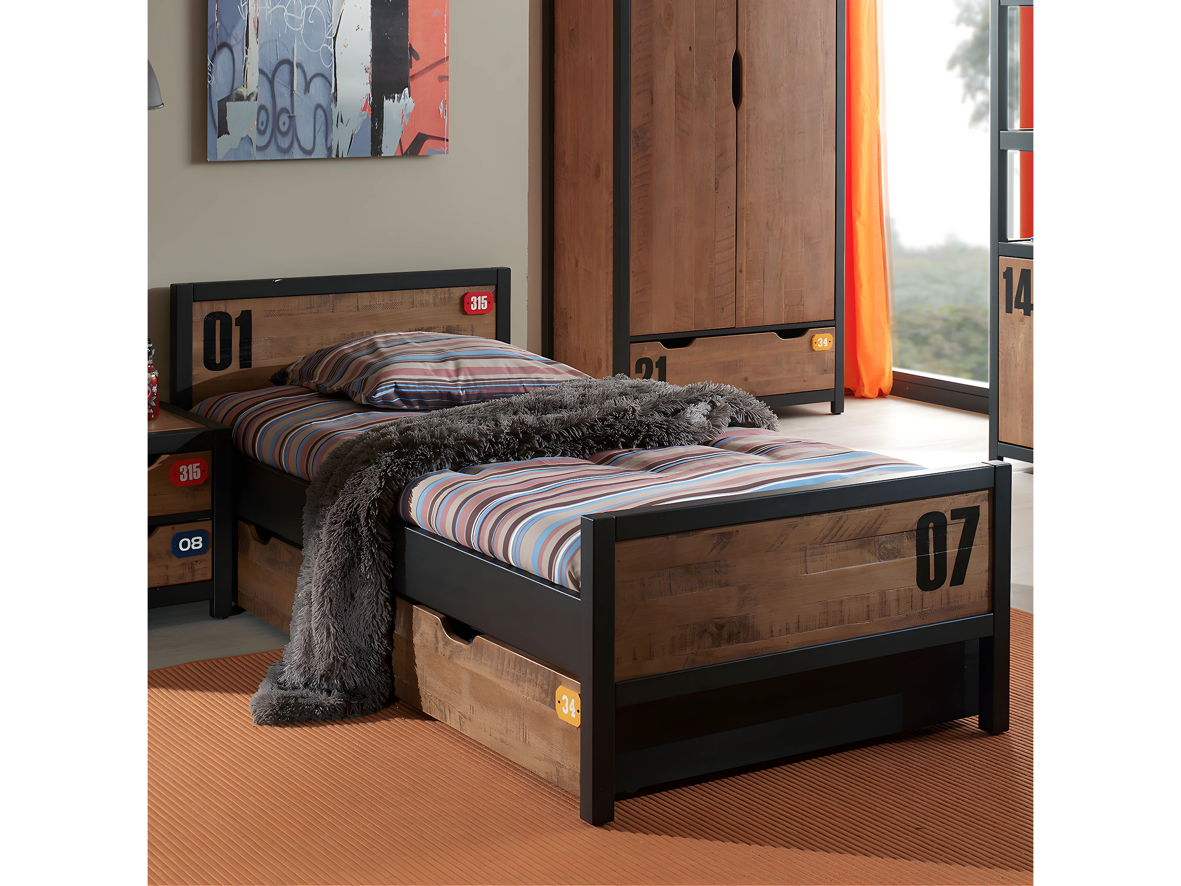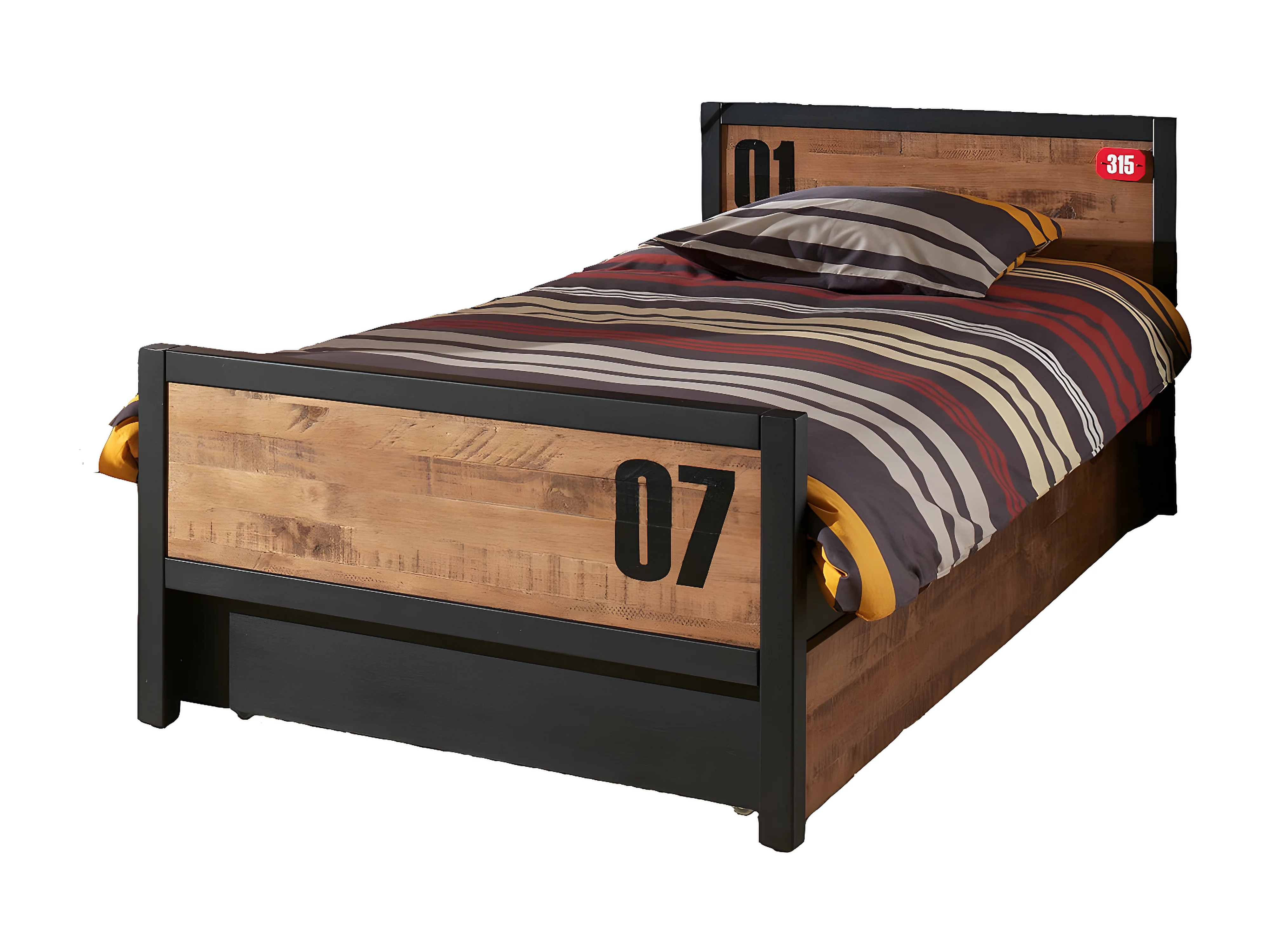 TCHAD - Lit 90x200cm avec Tiroir en Pin Massif à Motifs