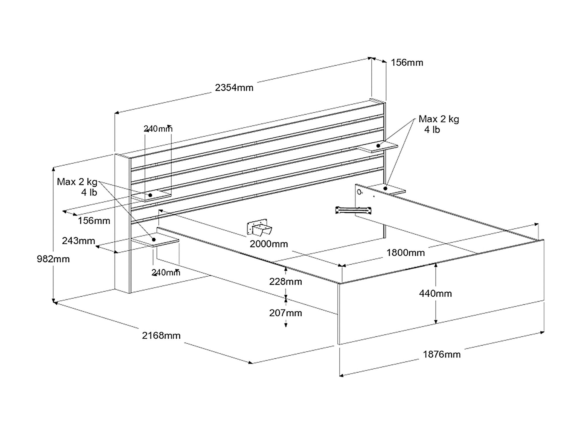 Lit 180 x 200 cm avec 4 tiroirs - Coloris : Naturel + Sommier - TENALIA