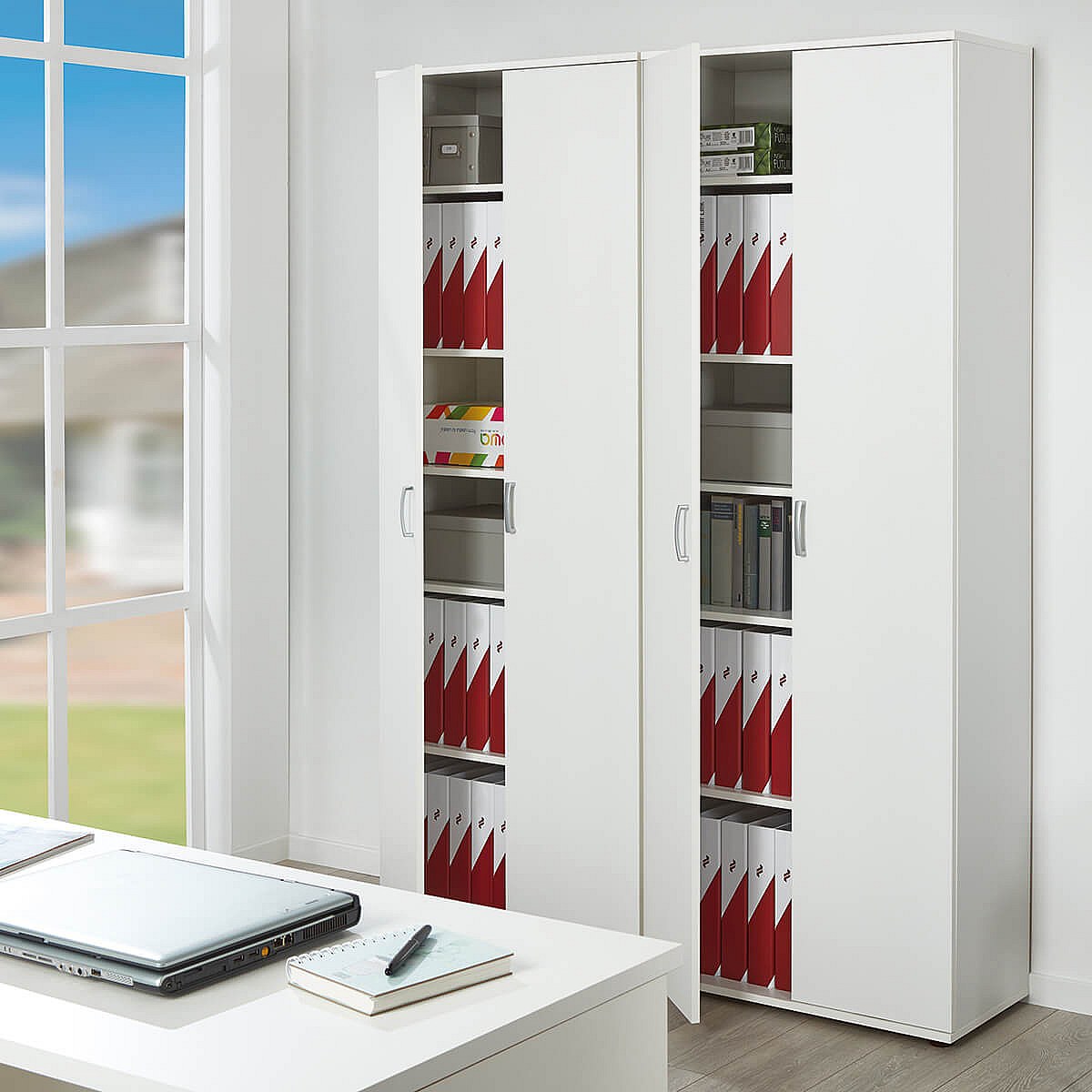 TEO - Armoire 2 Portes 6 Compartiments Coloris Blanc