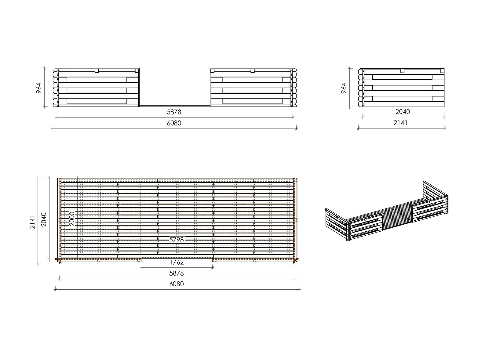 Terrasse en bois avec balustrade pour abri en bois - 12m2 - 6m x 2m - couleur: naturel - DOM555 - ALTANKA