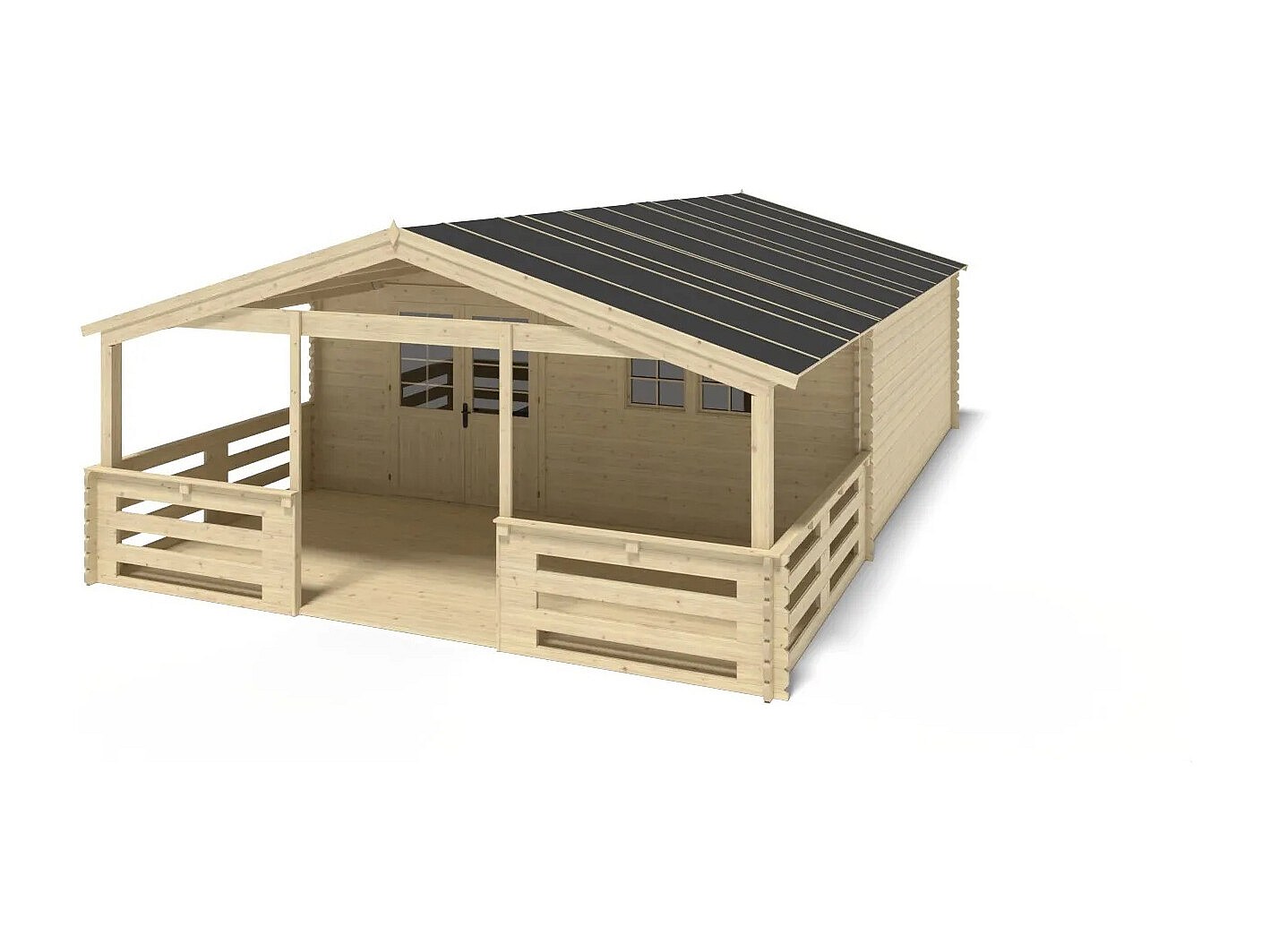 Terrasse en bois avec balustrade pour abri en bois - 18m2 - 6m x 3m - couleur: naturel - DOM558 - ALTANKA